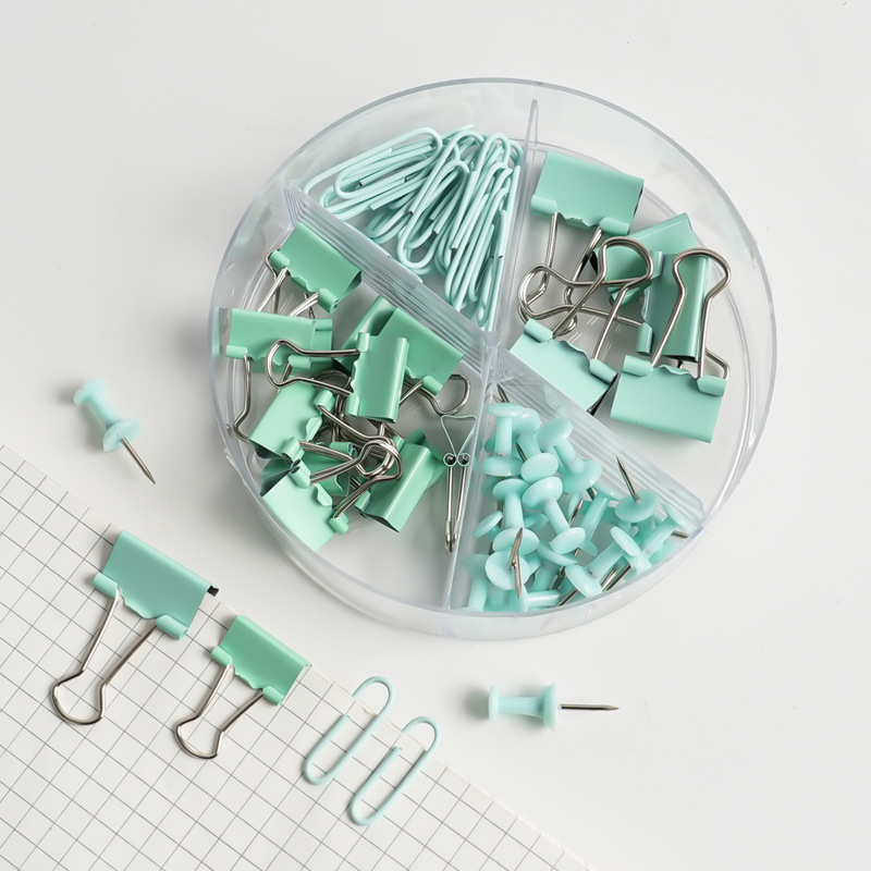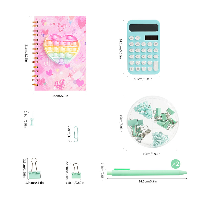 亚马逊跨境套装 绿色文具套装 回形针长尾夹计算器彩虹笔记本现货