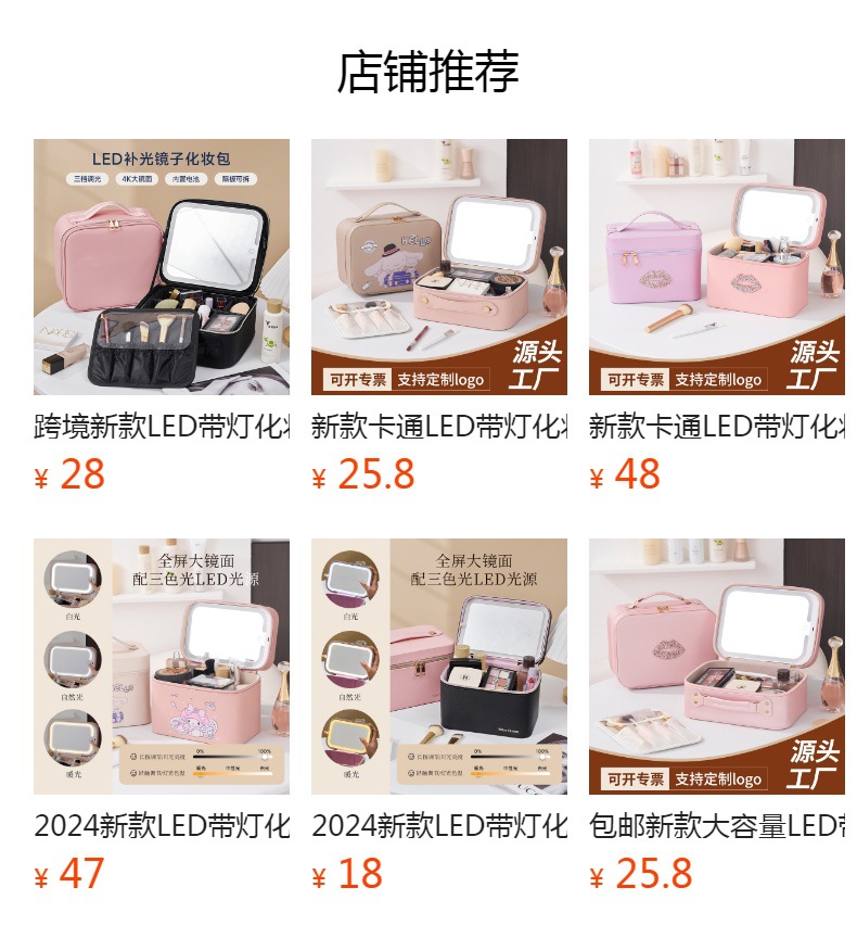 • 厂家直销化妆包、化妆箱,化妆盒,首饰盒、冰包,午餐包,野餐包、笔袋,量大从优!欢迎新老客户下单!实力产品质量获得业界的认可,欢迎各界朋友莅临参观,指导和业务治谈。免费设计,快速打样!!