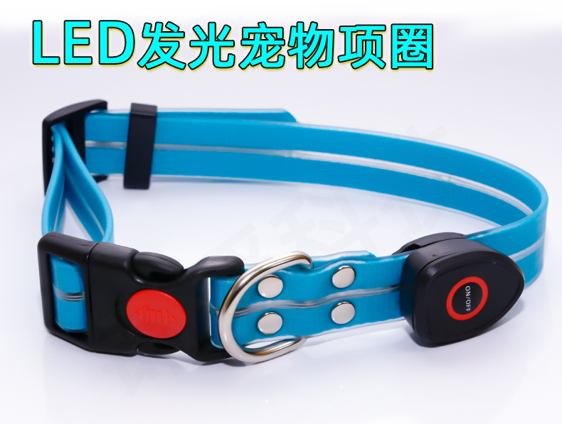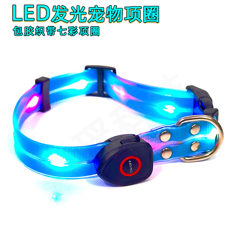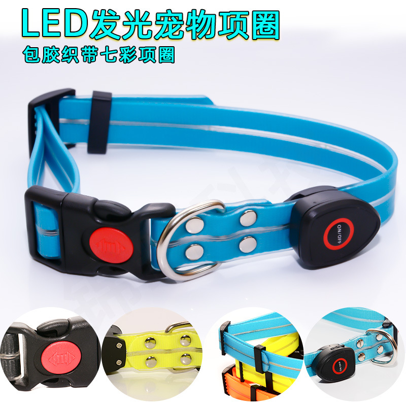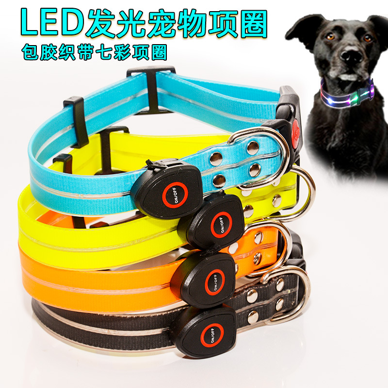 狗项圈发光项圈宠物狗狗发光项圈USB充电LED发光包胶织带项圈脖圈