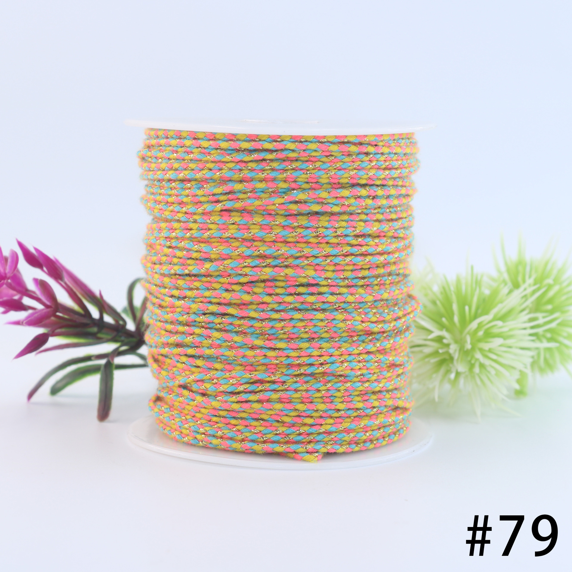 种类: 绳带 材质: 线绳 处理工艺: 手工编织 货号: SGMX 产地: 金华 品牌: 洛嘉 颜色: 色号#67,色号#68,色号#69,色号 型号: 2.0mm(约100米/卷) 主要下游平台: 淘宝,京东,ebay,PDD,亚马逊,w 有可授权的自有品牌: 是 重量: 0.25 kg/筒