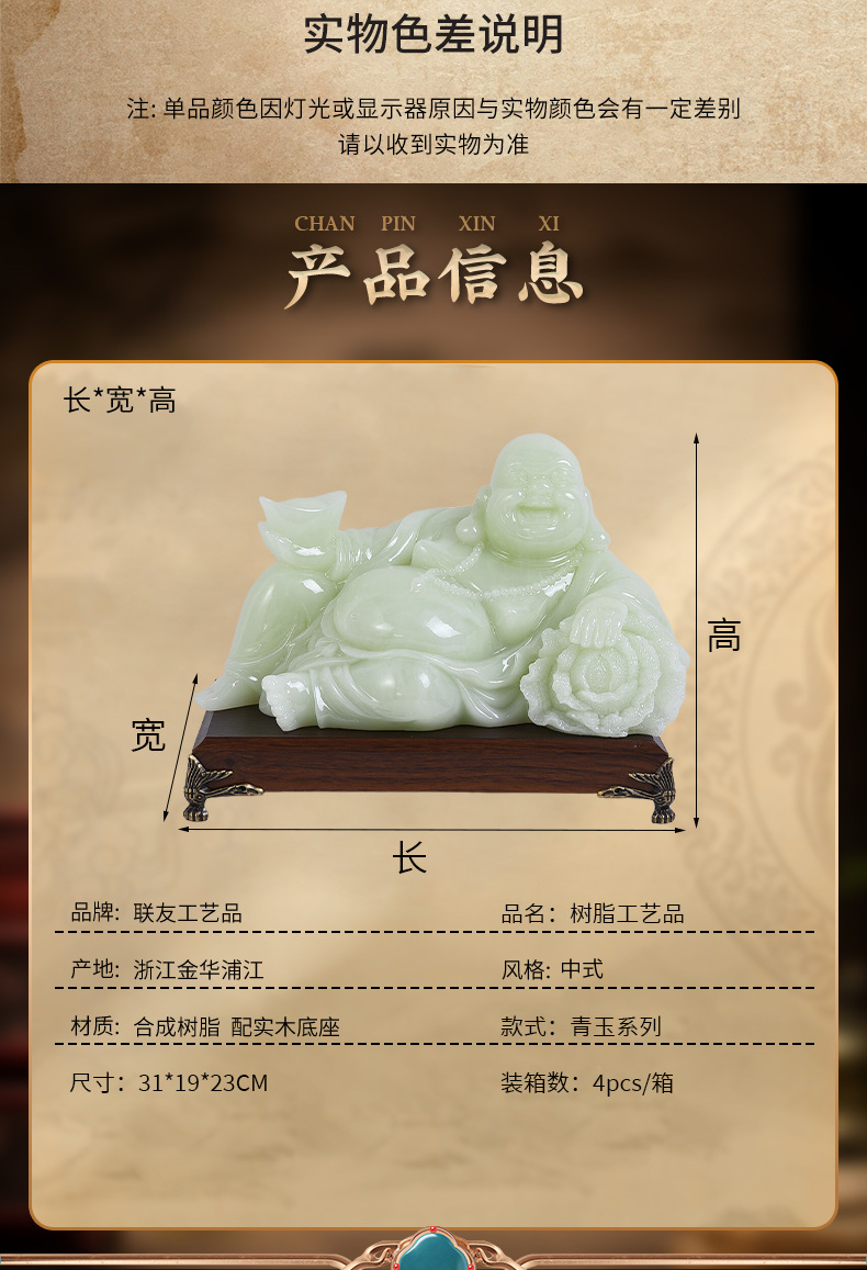 材质: 合成树脂 货号: WY -189-10 品牌: 联友 类别: 佛像 包装: 纸盒包装 是否专利货源: 否 颜色: 31*19*23CM 适用送礼场合: 生日,旅游纪念,乔迁,其他 适用送礼关系: 晚辈,情侣,夫妻,同事,朋友,长辈,孩子 送礼用途: 商务礼品,广告礼品,会议礼品,节庆礼品, 重量: 5.0 kg/件