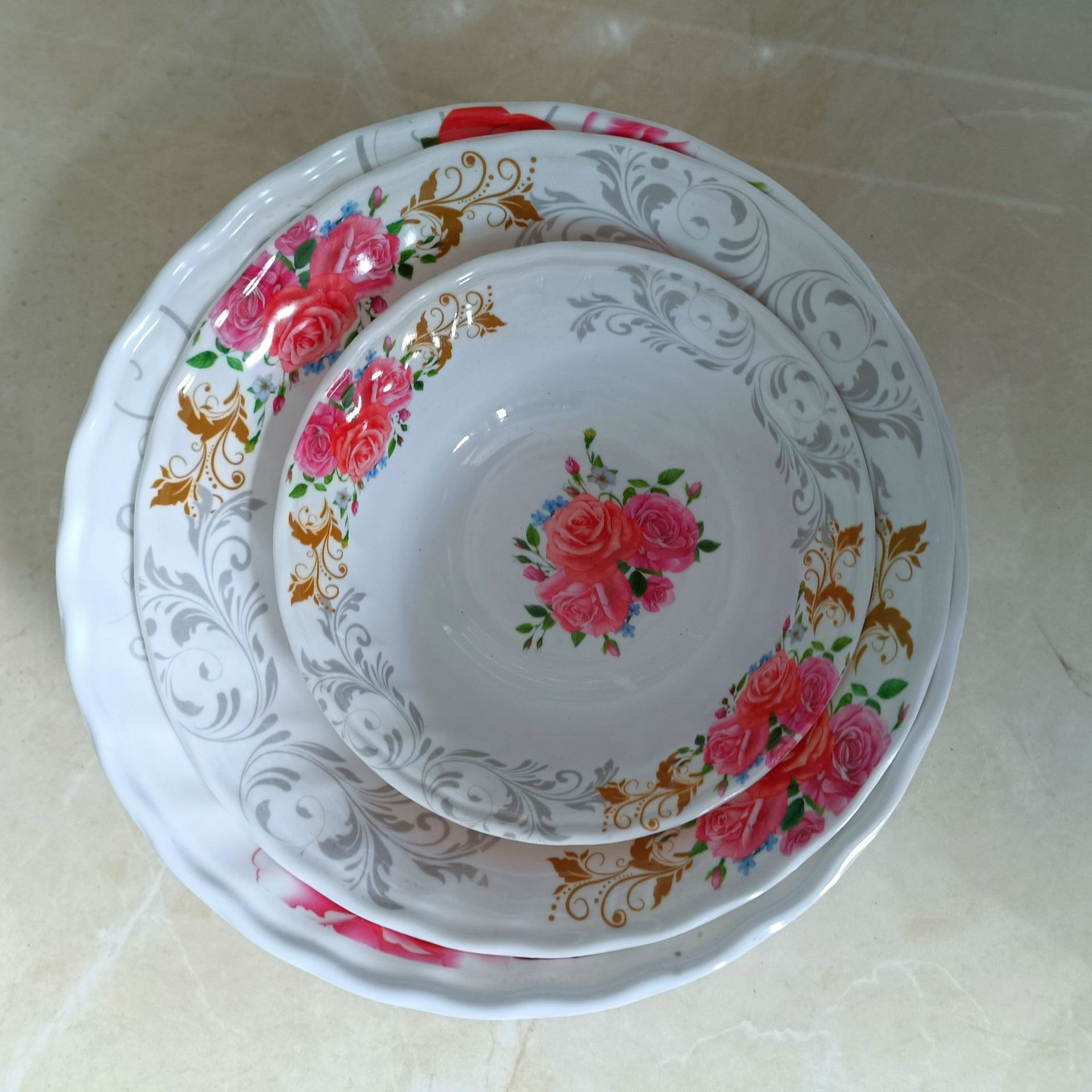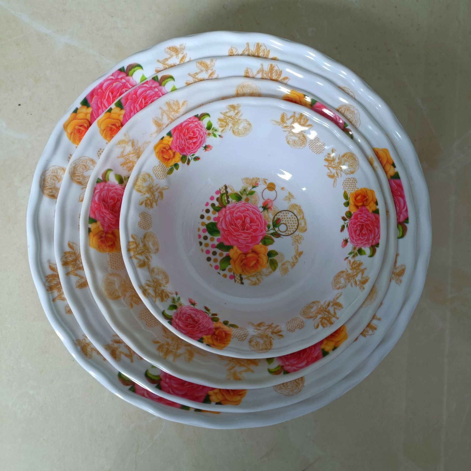 专业生产定做美耐皿密胺仿瓷餐具,包括各式托盘,碗,勺子,盘子,烟灰缸,猫狗碗等,可以打logo印标;30件起批价,可定做各种花色。规模以上实力厂家,年销售额几个小目标,品优价廉,本公司拥有自己的原料粉厂和餐具厂,大机台80+台,模具3000+套,占地100+亩,工人400+,从原料生产到餐具成品一条龙服务于外贸公司 欢迎实力外贸公司建立起长期合作。欢迎各界客户定制各类密胺产品,电话/VX:18314803601( 运营推销直接拉黑)扣285879921 我们是工厂,不零售。接受