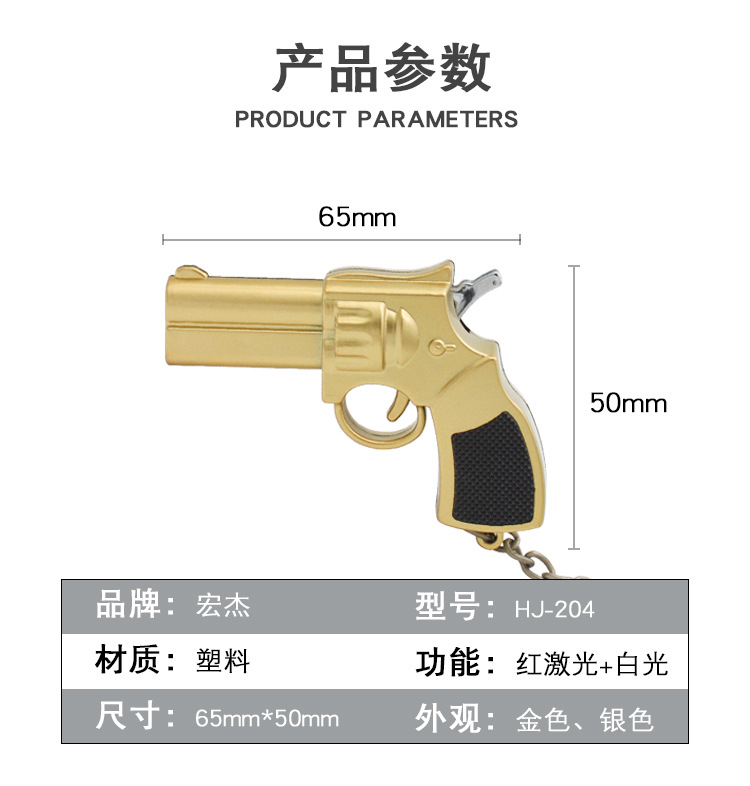 品牌: 宏杰 材质: 塑料 货号: 204 规格: 65mm*50mm 类型: 多功能、白光+激光 颜色: 金色、银色 适用送礼场合: 节日,其他 加印LOGO: 可以 加工定制: 是 主要下游平台: ebay,亚马逊,wish,速卖通,独立 重量: 0.03 kg/个