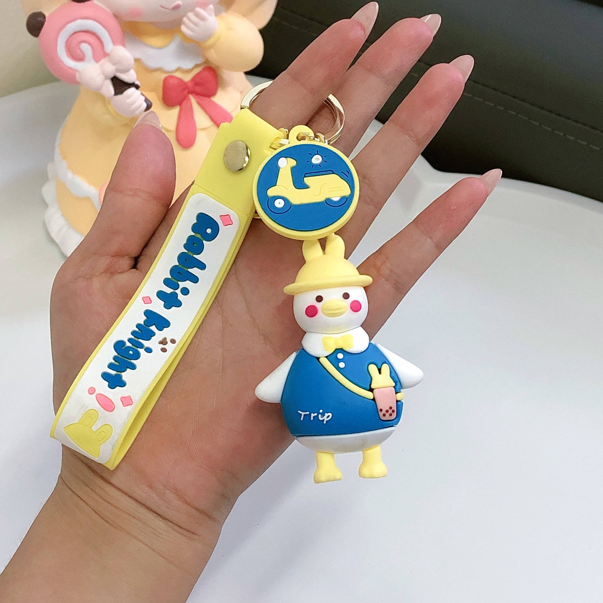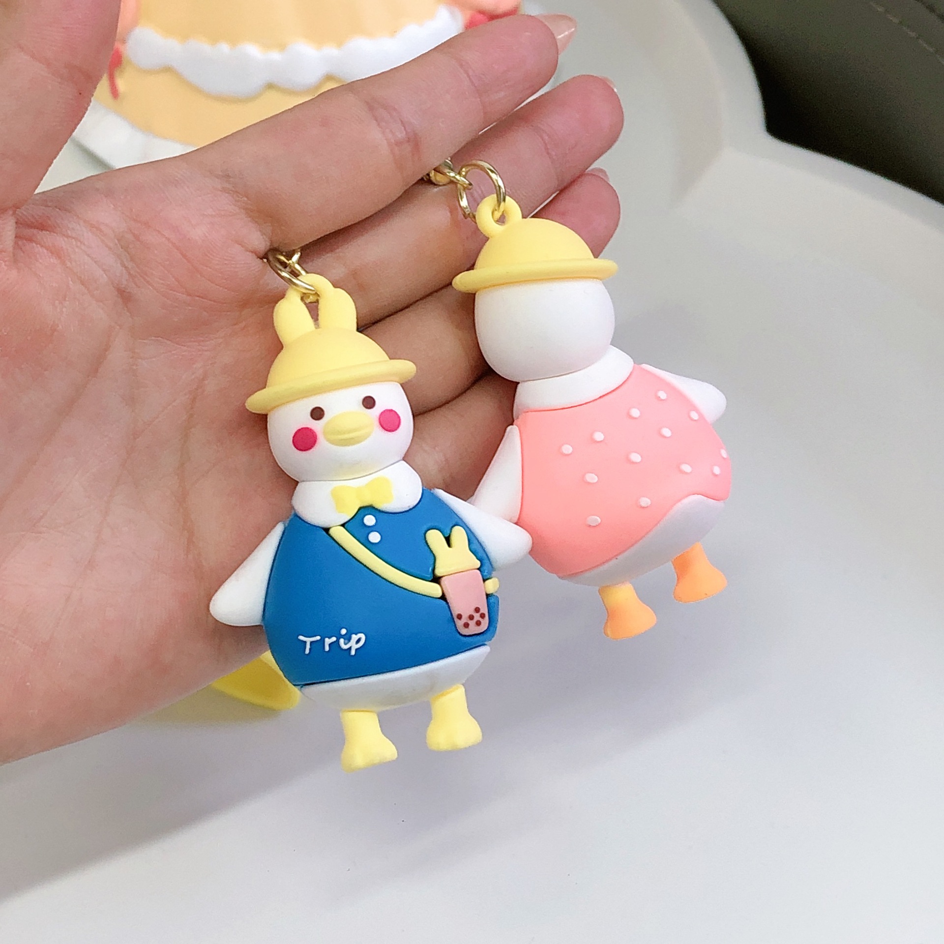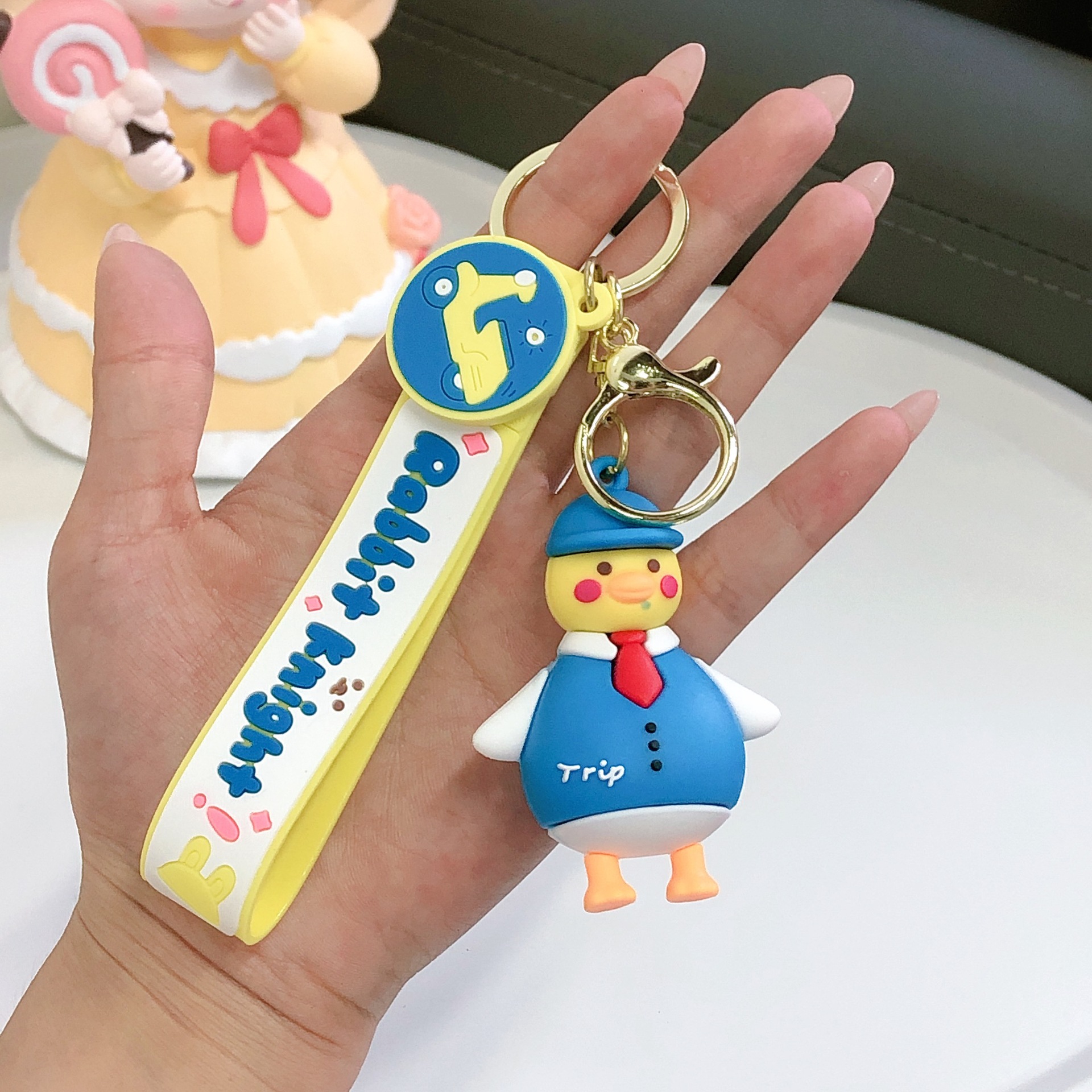 领结旅行鸭钥匙扣书包挂件情侣公仔玩偶小挂饰批发汽车钥匙链配件 投诉