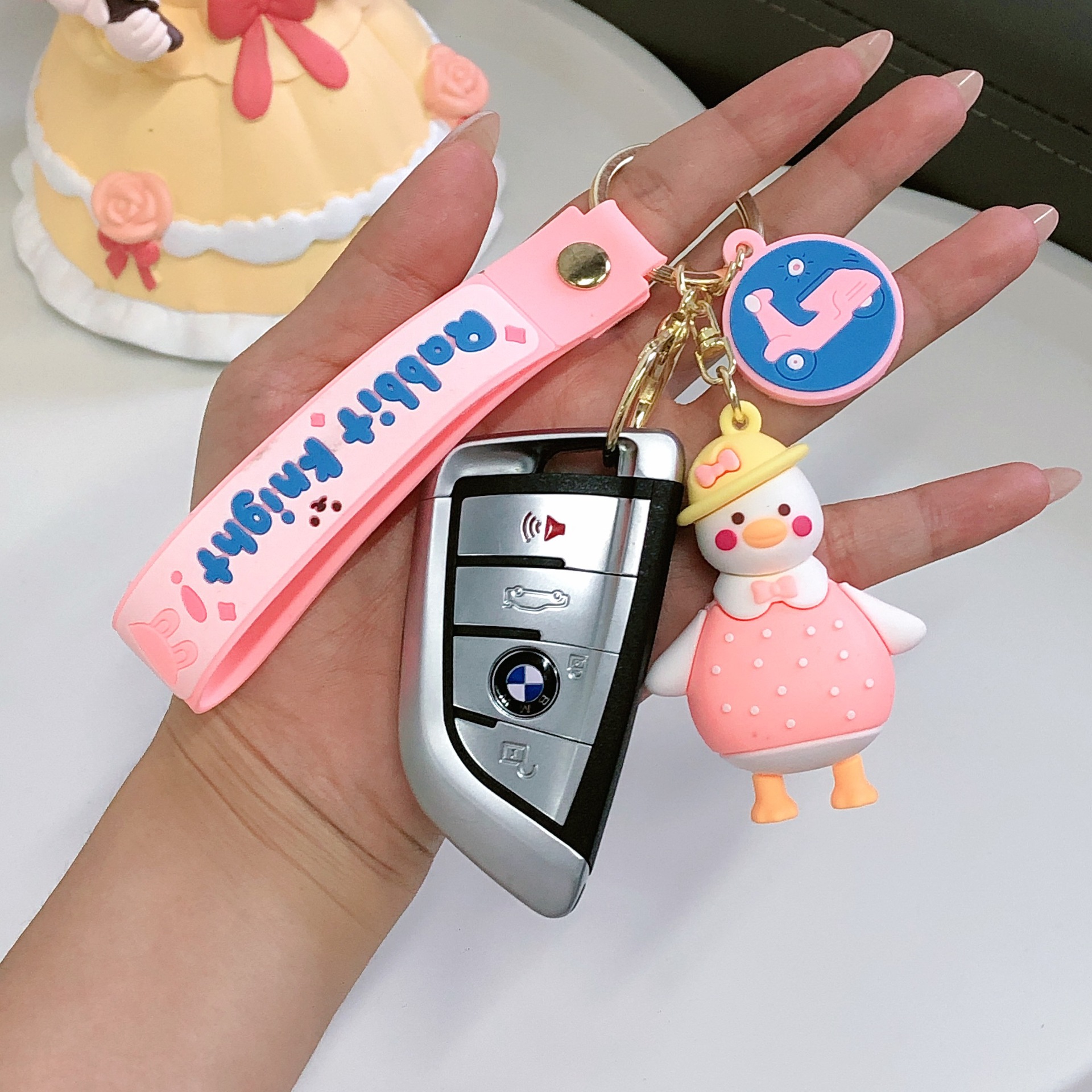 领结旅行鸭钥匙扣书包挂件情侣公仔玩偶小挂饰批发汽车钥匙链配件