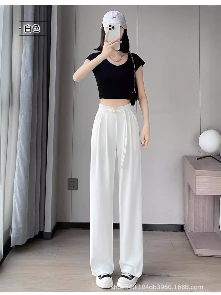 垂感冰丝裤女裤子2024夏季薄新款垂感高腰西裤高级感小个子雪纺阔 投诉