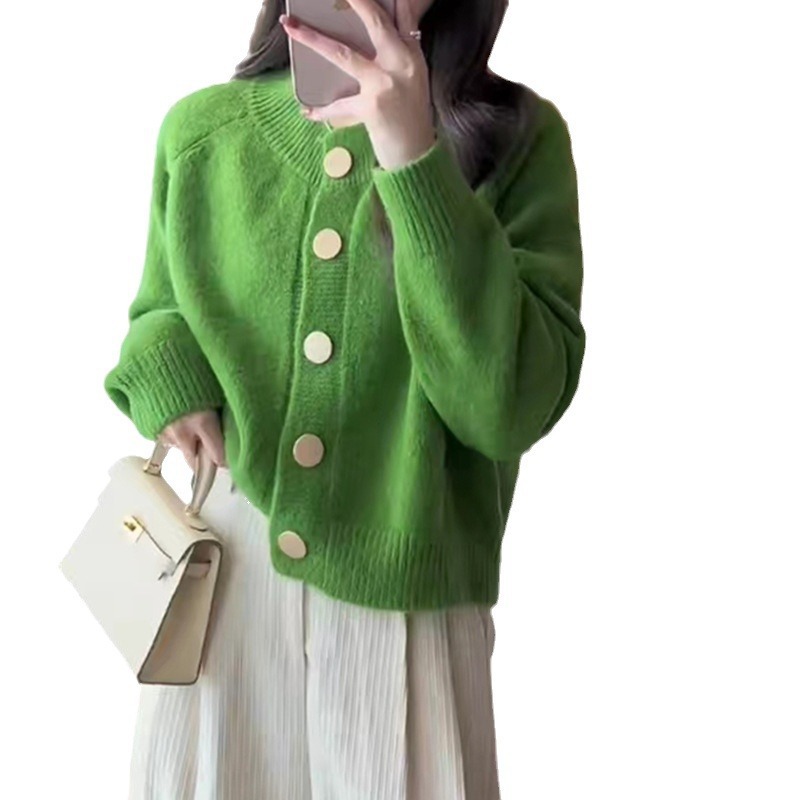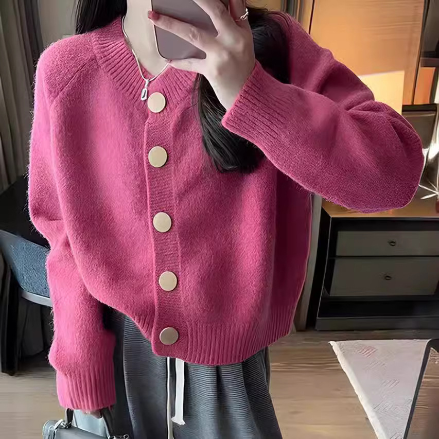 韩系梅子色软糯针织开衫女2024秋冬设计感洋气百搭毛衣外套上衣厚 投诉