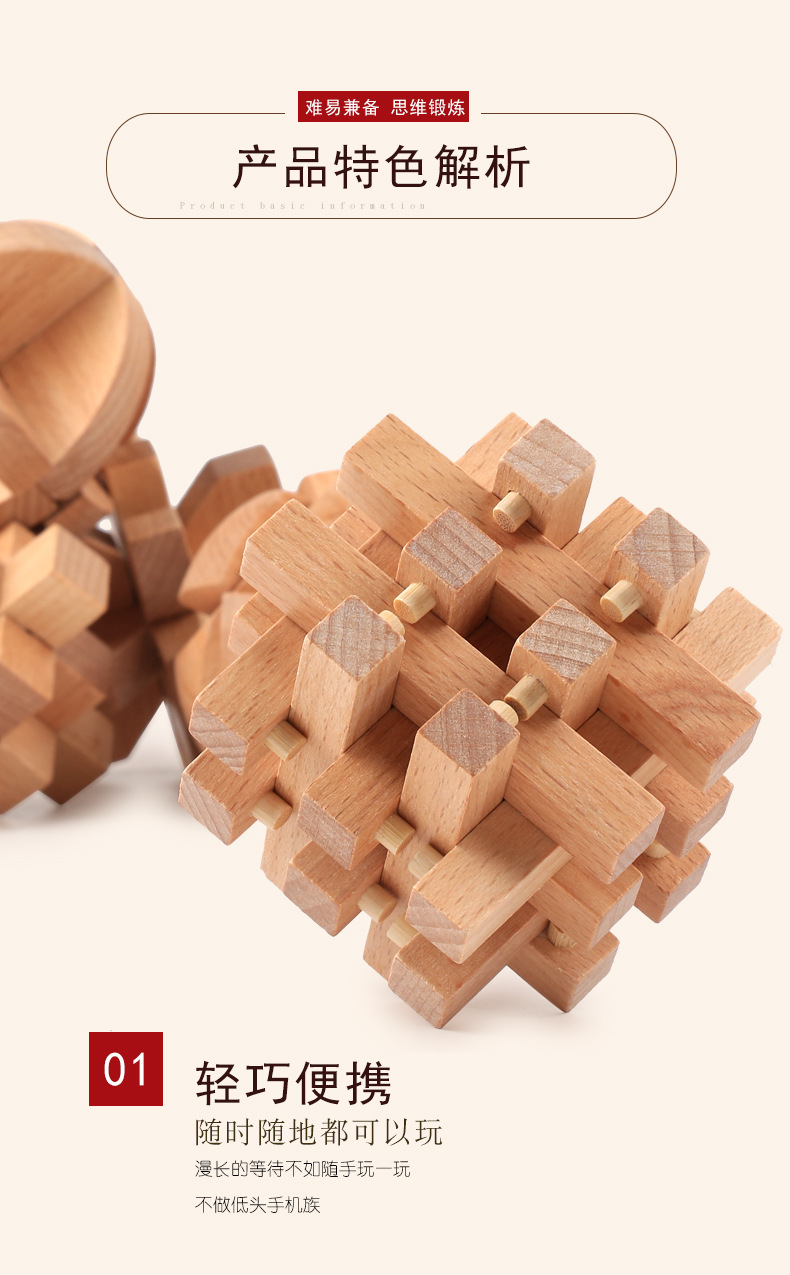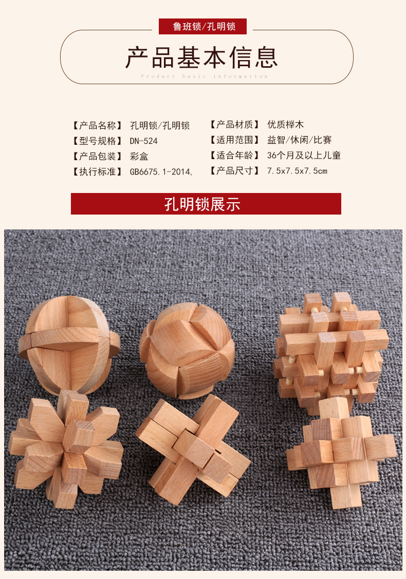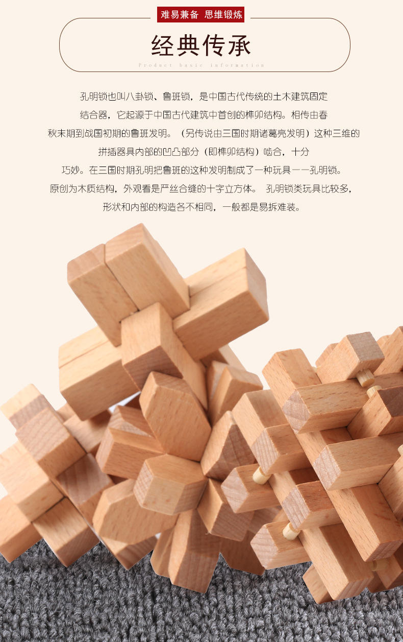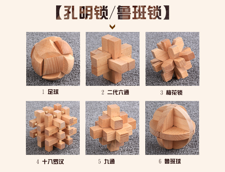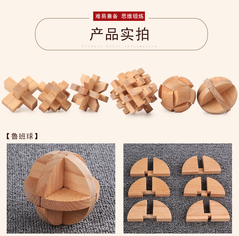 鲁班锁孔明锁全套礼盒木制益智玩具儿童成人智力解锁机关榉木 English | 投诉