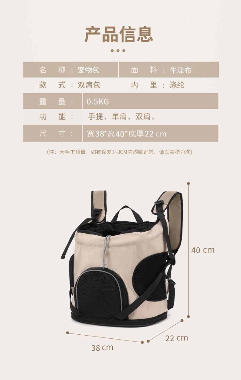 跨境大容量猫包轻便透气宠物包外出便携猫咪背包小型狗狗双肩背包 English | 投诉