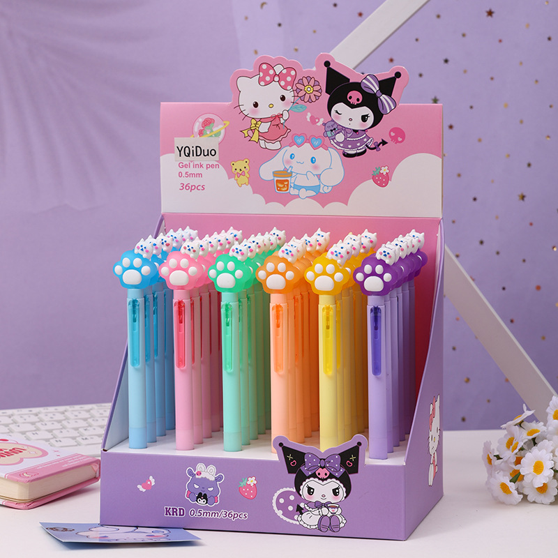 卡通猫爪按动笔可爱造型ST中性笔黑色速干签字笔创意学生文具0.5