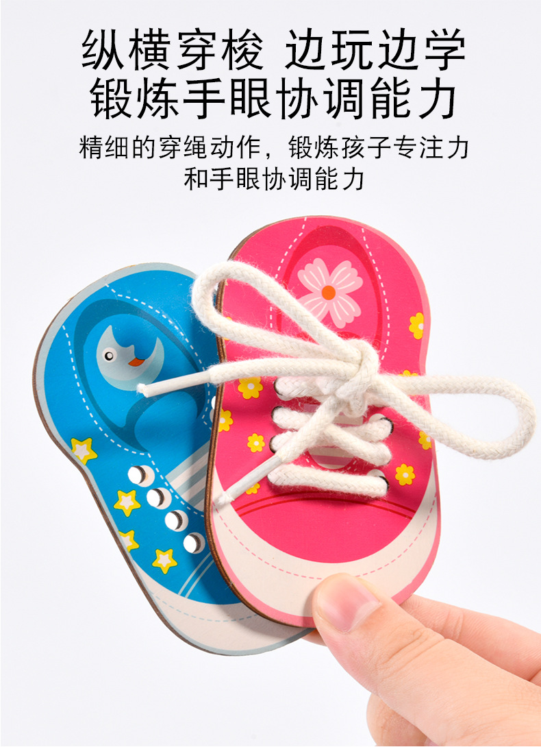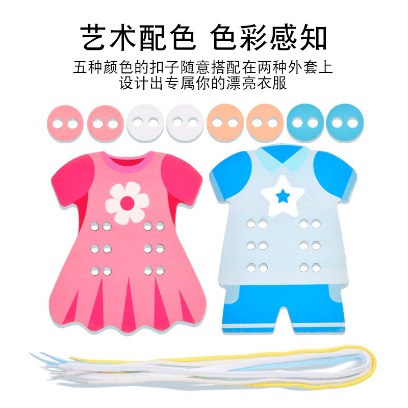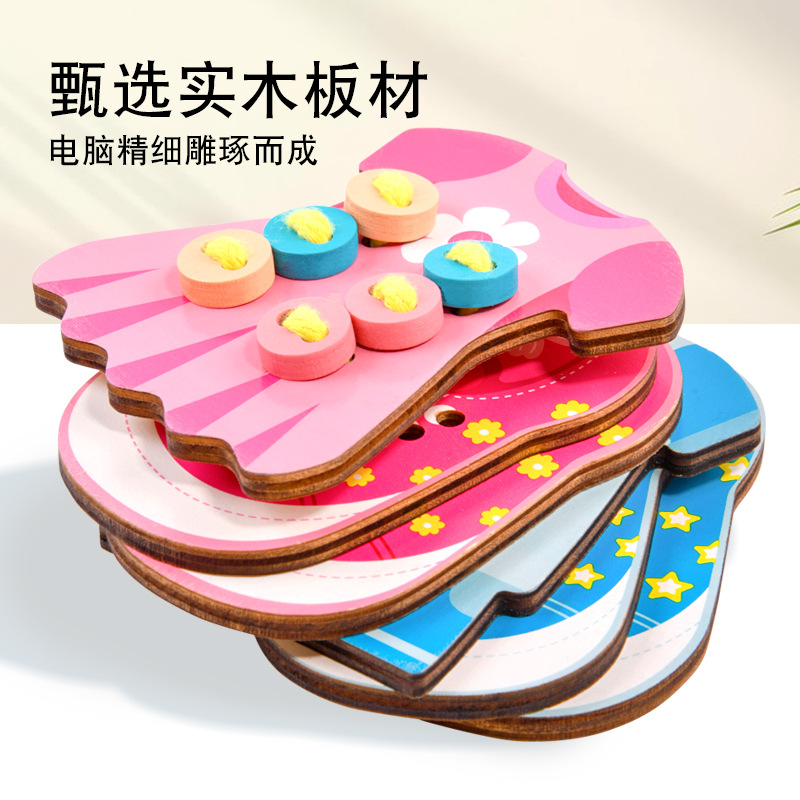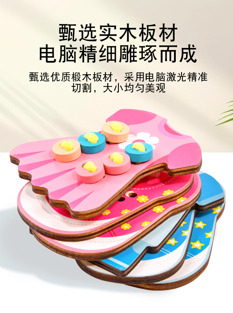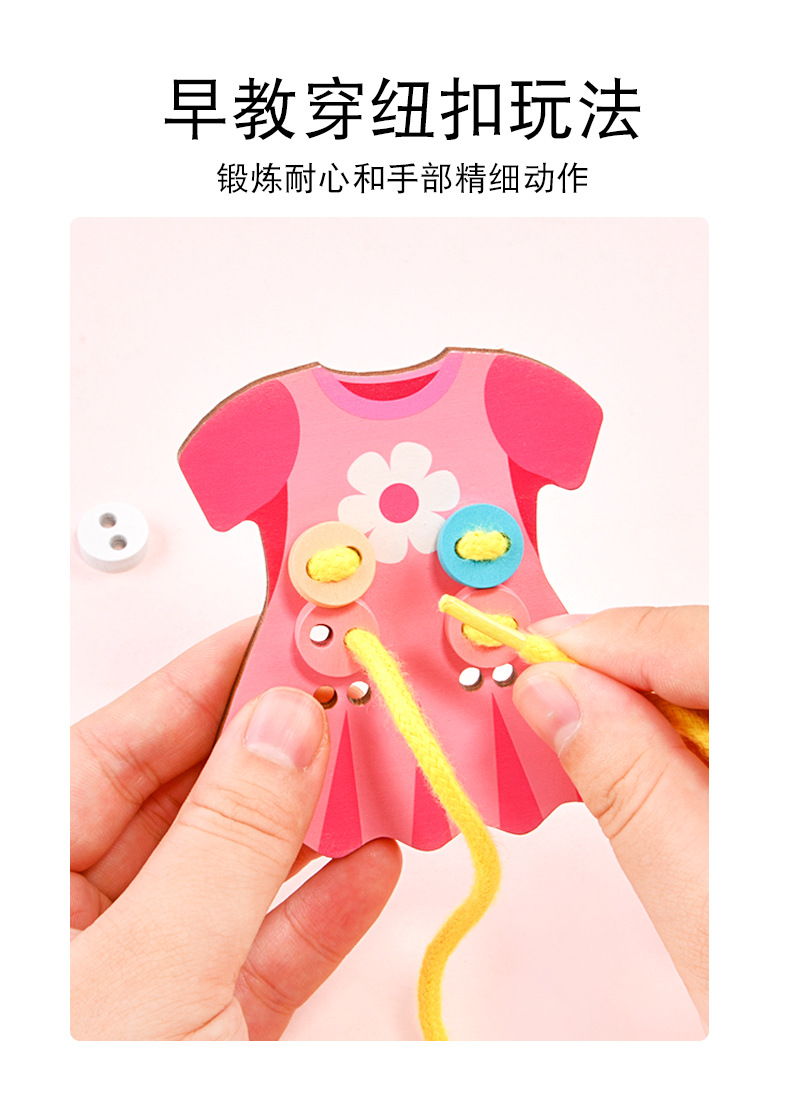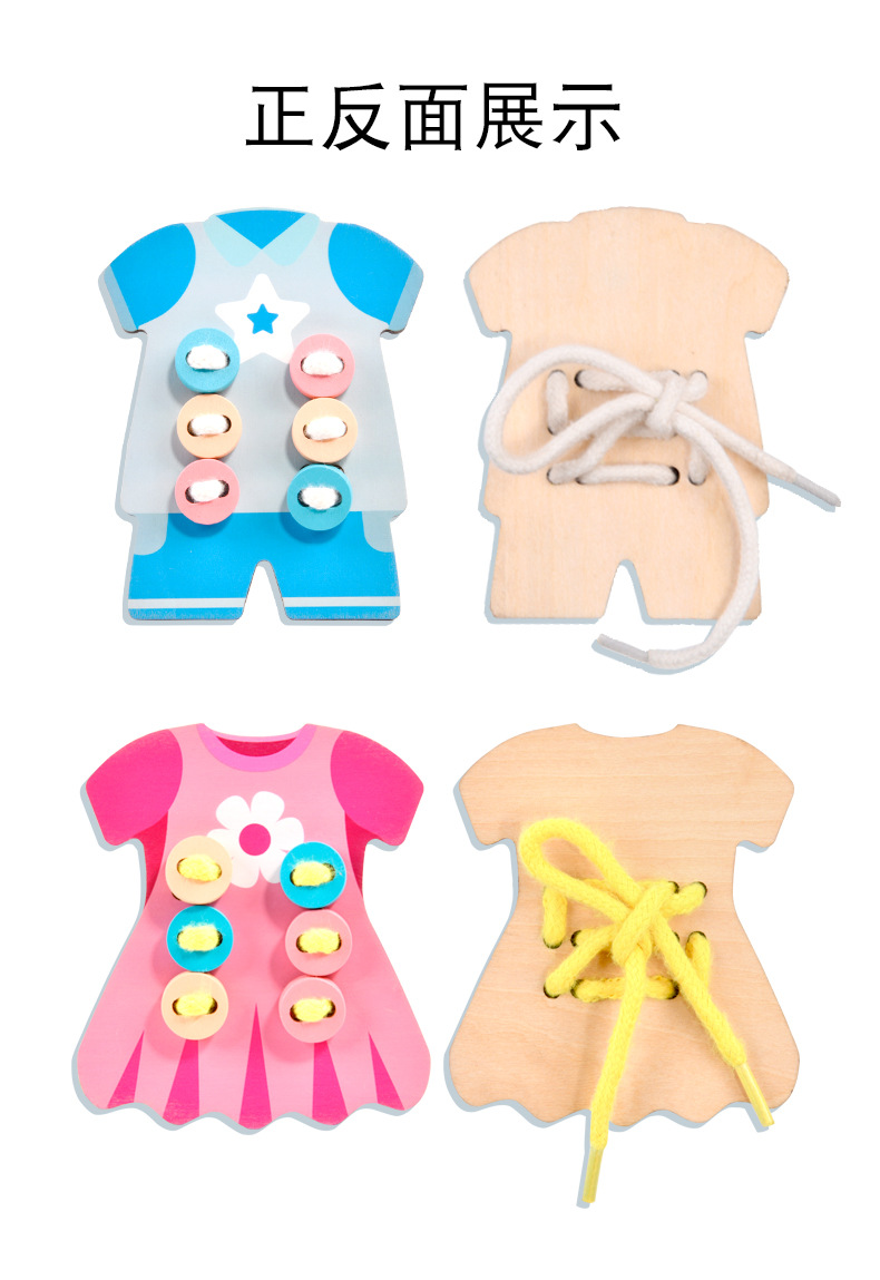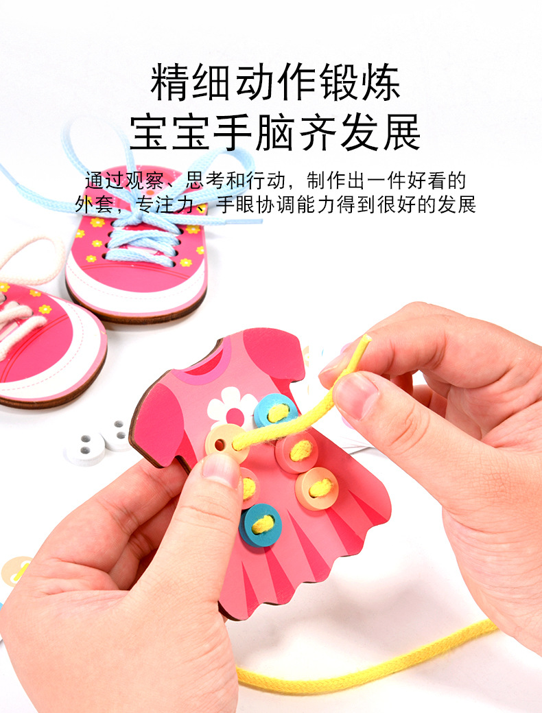 趣味益智穿衣纽扣穿线板玩具系鞋带训练早教木制玩具批发幼儿园 English | 投诉