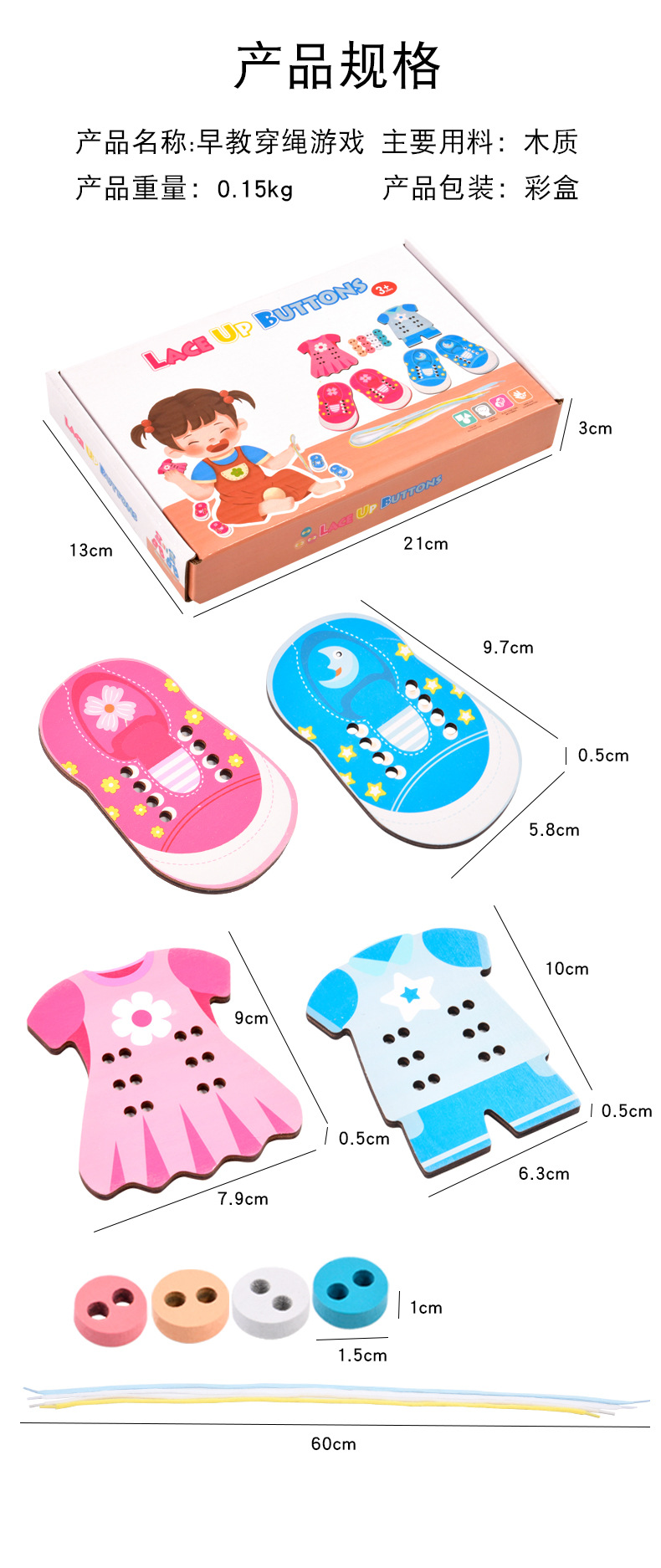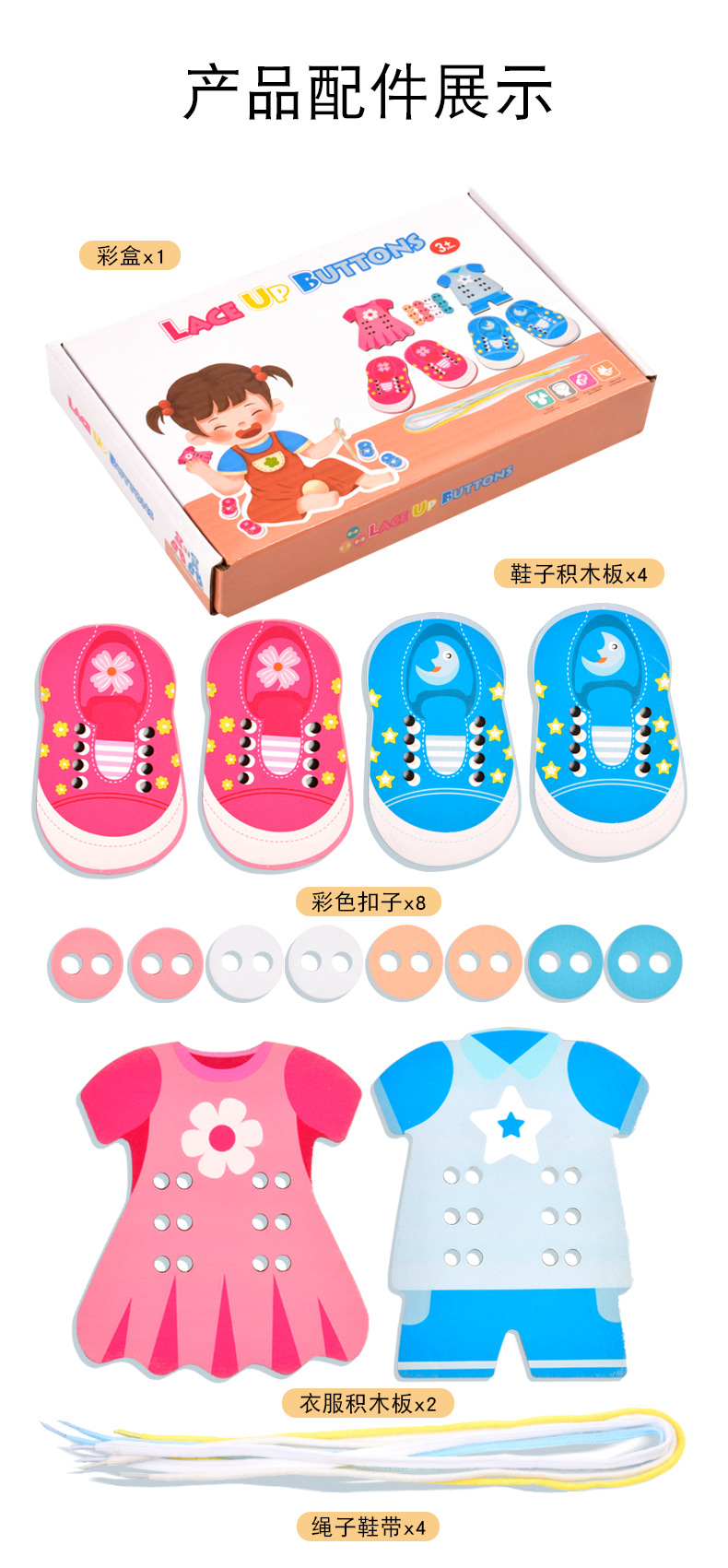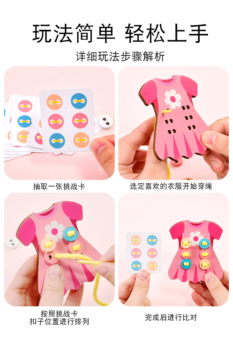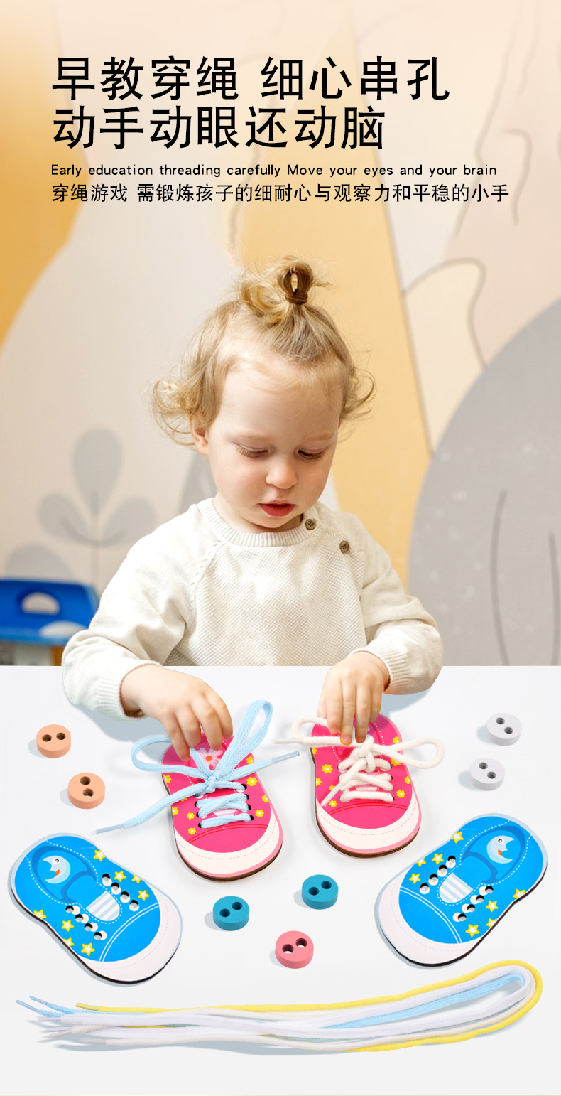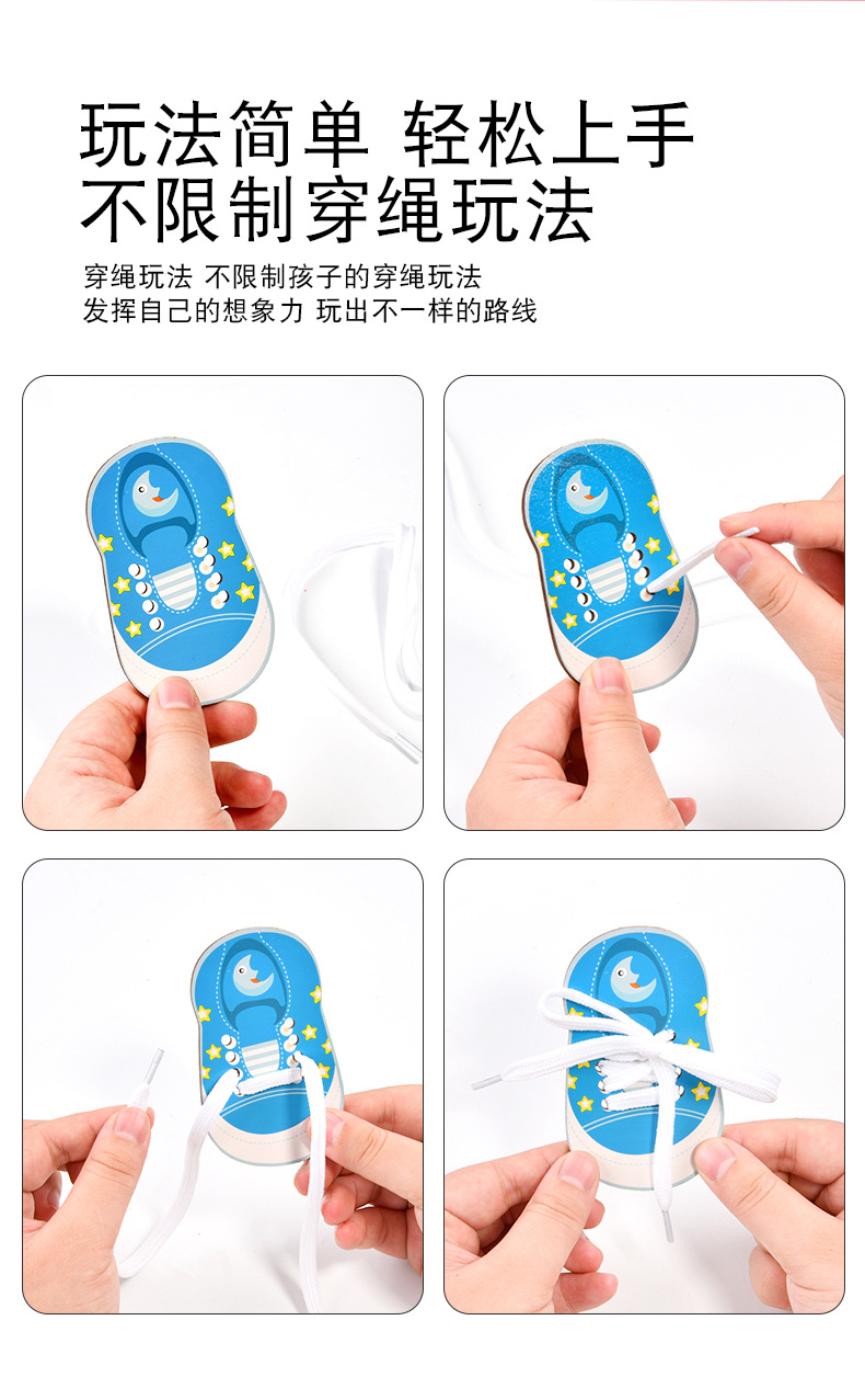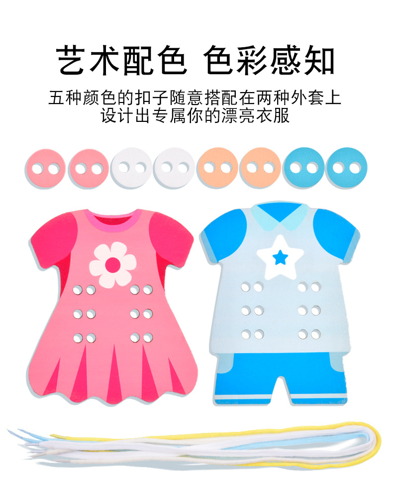 趣味益智穿衣纽扣穿线板玩具系鞋带训练早教木制玩具批发幼儿园 English | 投诉