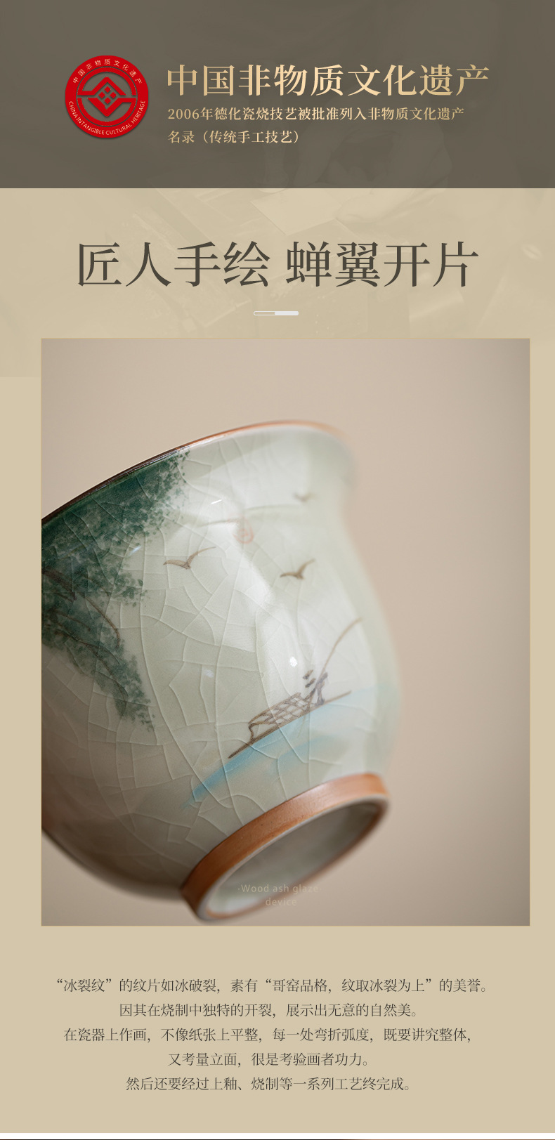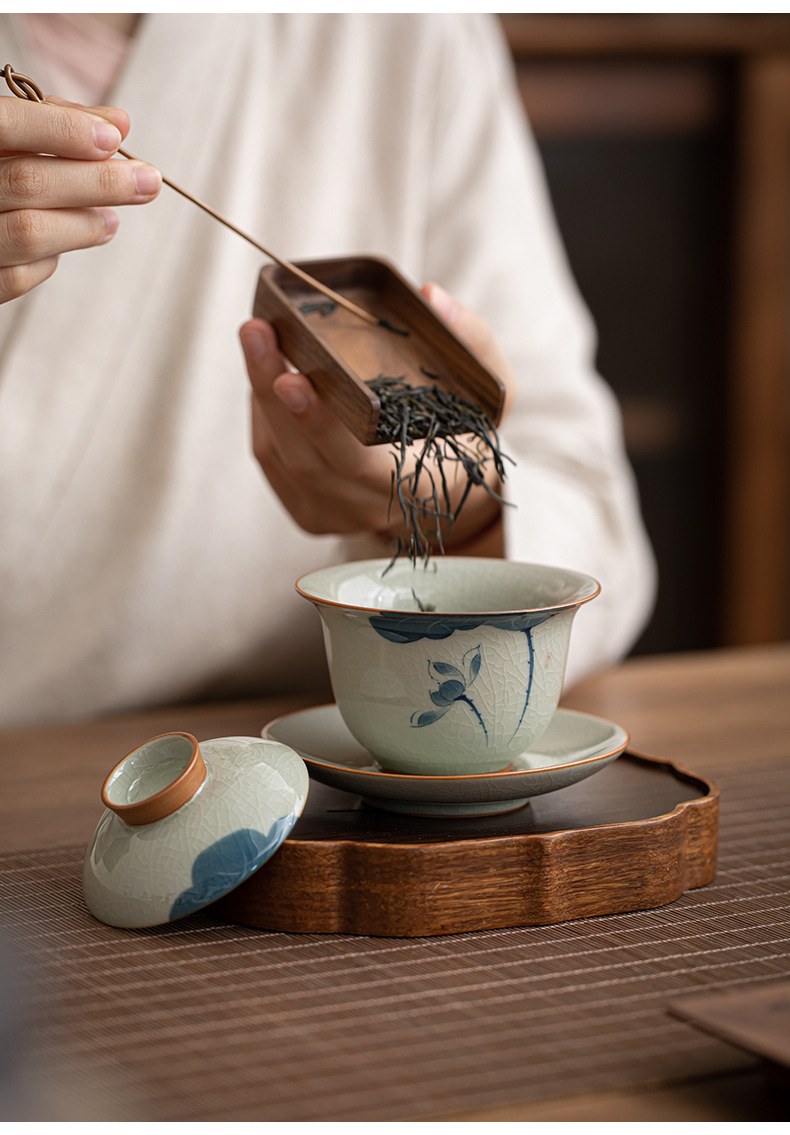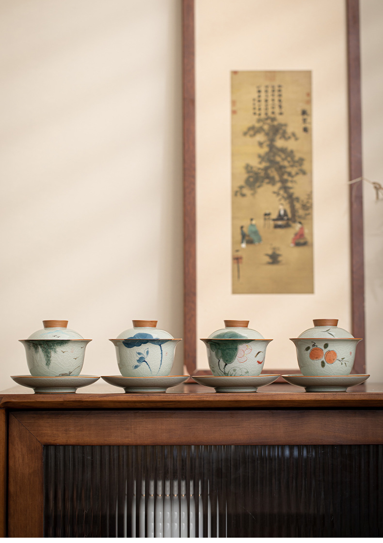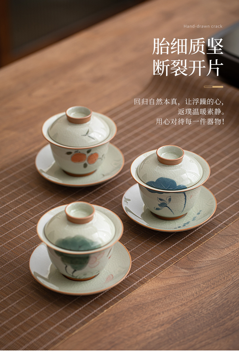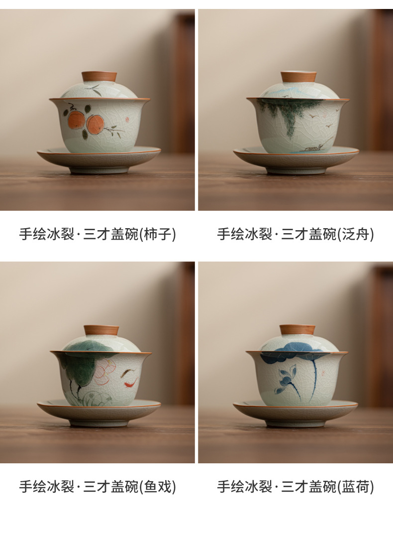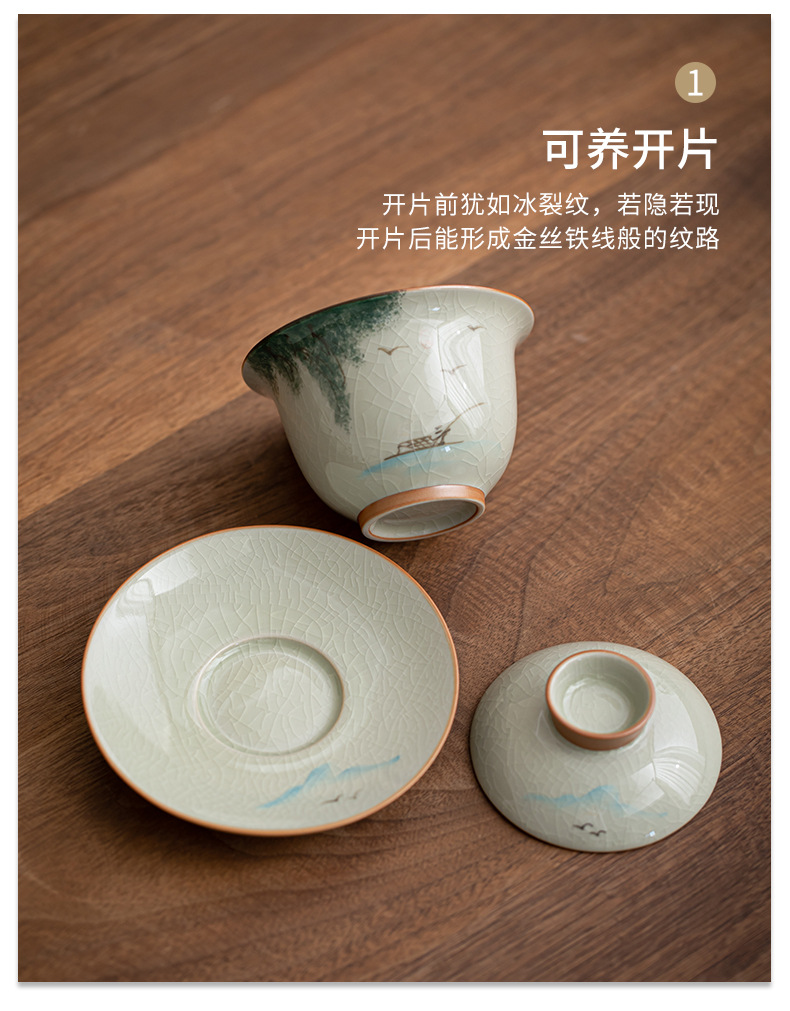 哥窑手绘侧把壶盖碗陶瓷茶杯个人专用公道杯斗笠杯功夫茶具茶盏 English | 投诉