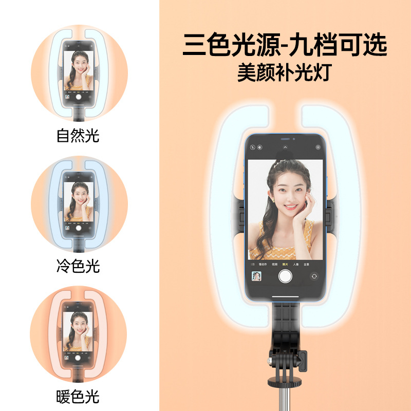 形九档三色补光美颜灯,支持360度