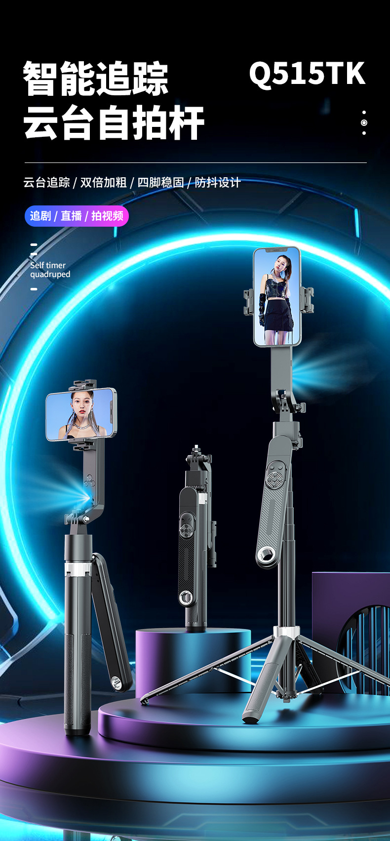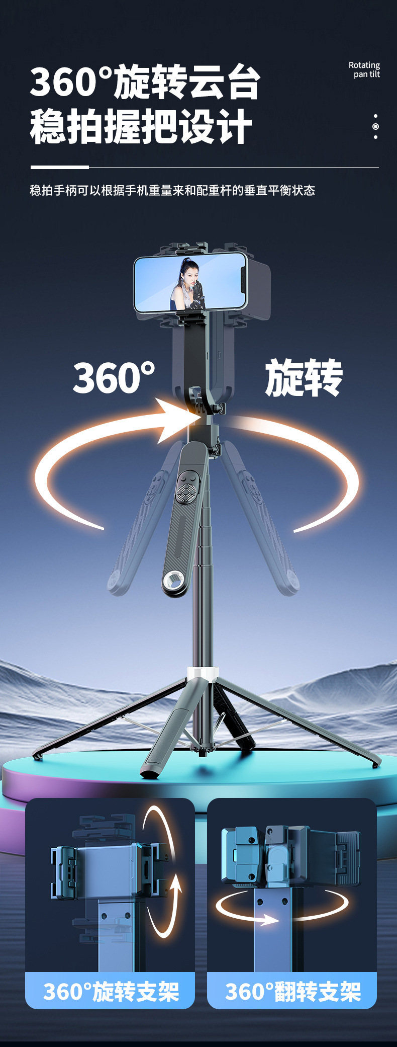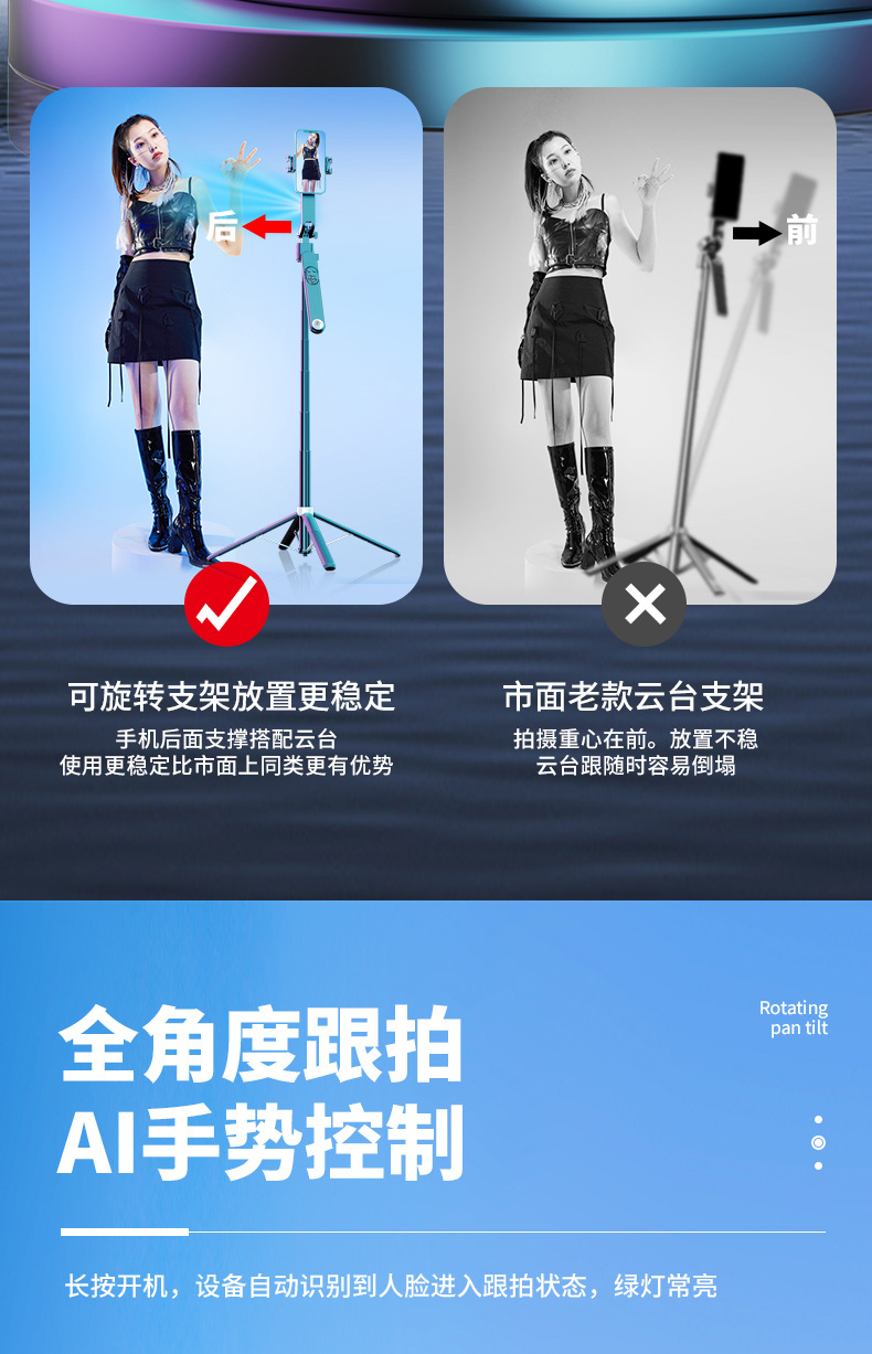 5.手机架子360°横竖拍,180°前后拍摄