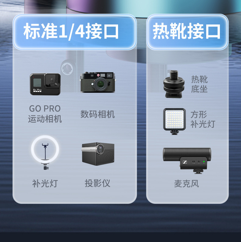 7.配有4/1螺丝,可外接补光灯/麦克风/收音器