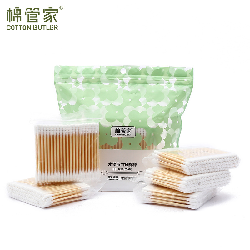 棉管家双头水滴圆头状卫生棉签一次性袋装卫生消毒棉棒厂家直供