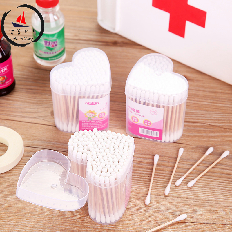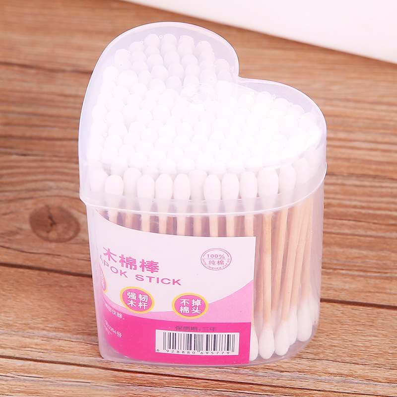 心形优质140支软袋木棒双头棉签 卫生棉棒美容棒 化妆棉签棒定制