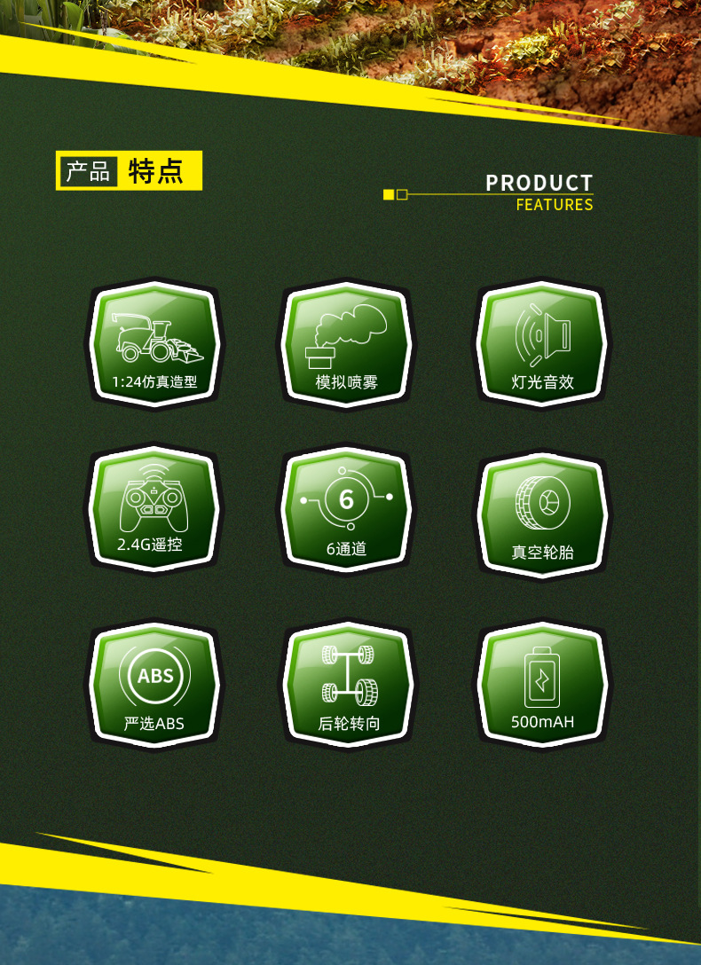 【产品名称】:2.4G遥控仿真收获机系列