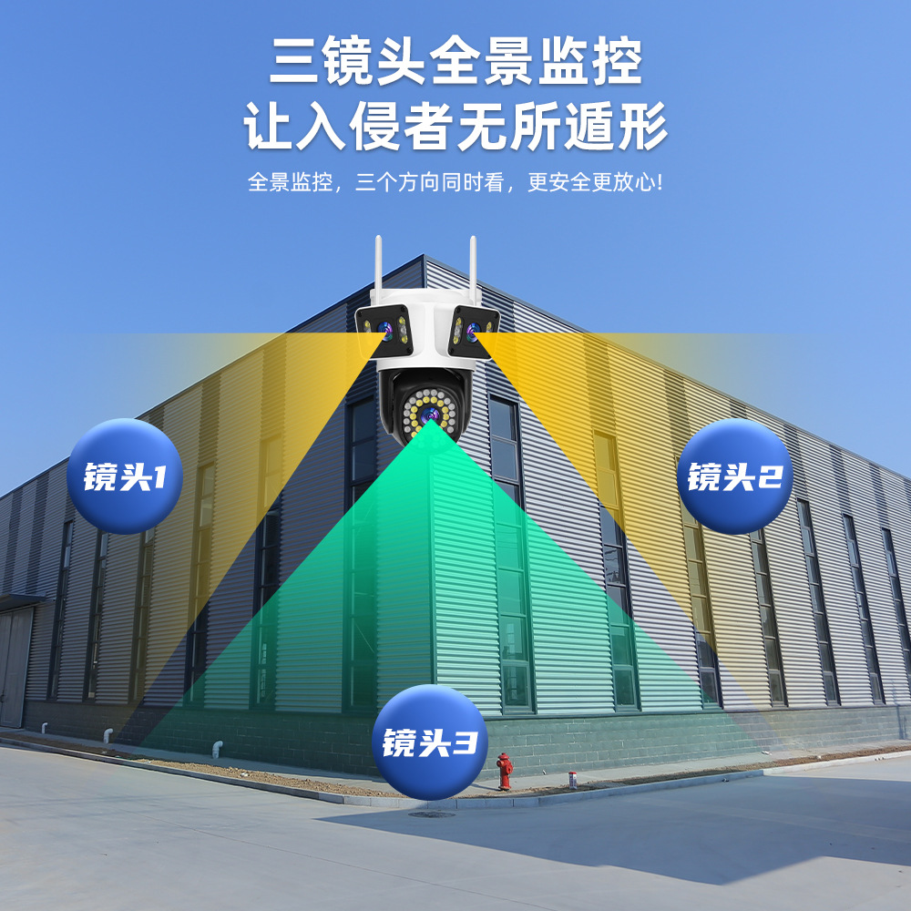 Yoosee三目三画面枪球联动技威摄像头高清无线WIFI摄像机F3-17162