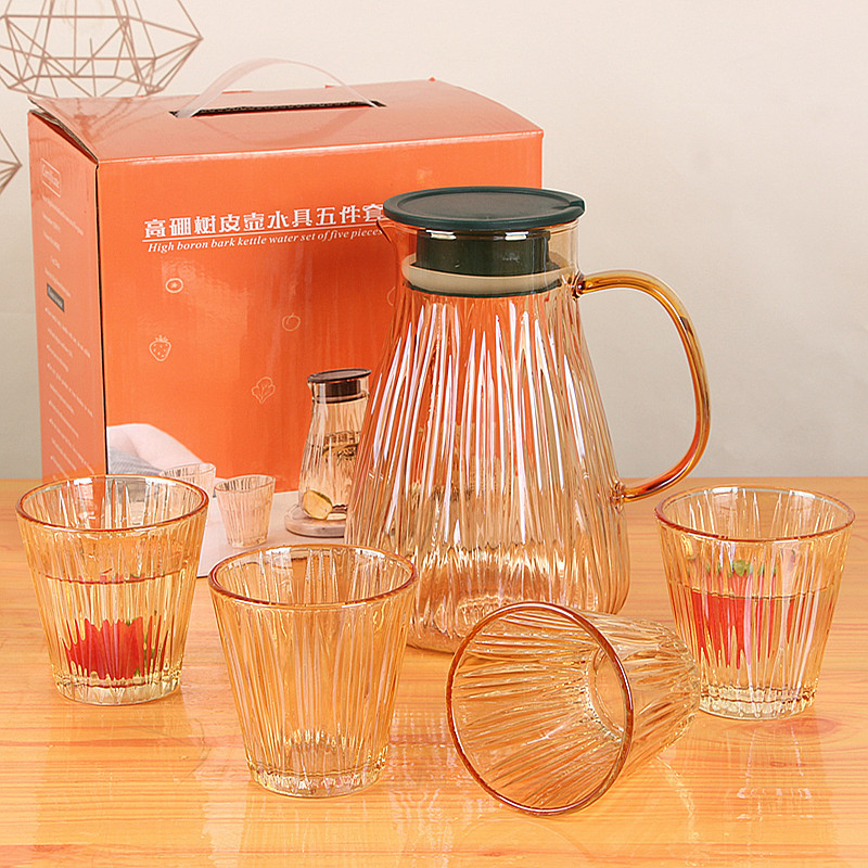 产品名称:高硼硅树皮壶水具五件套 耐热温度:0-200度 装箱数量:1箱12套