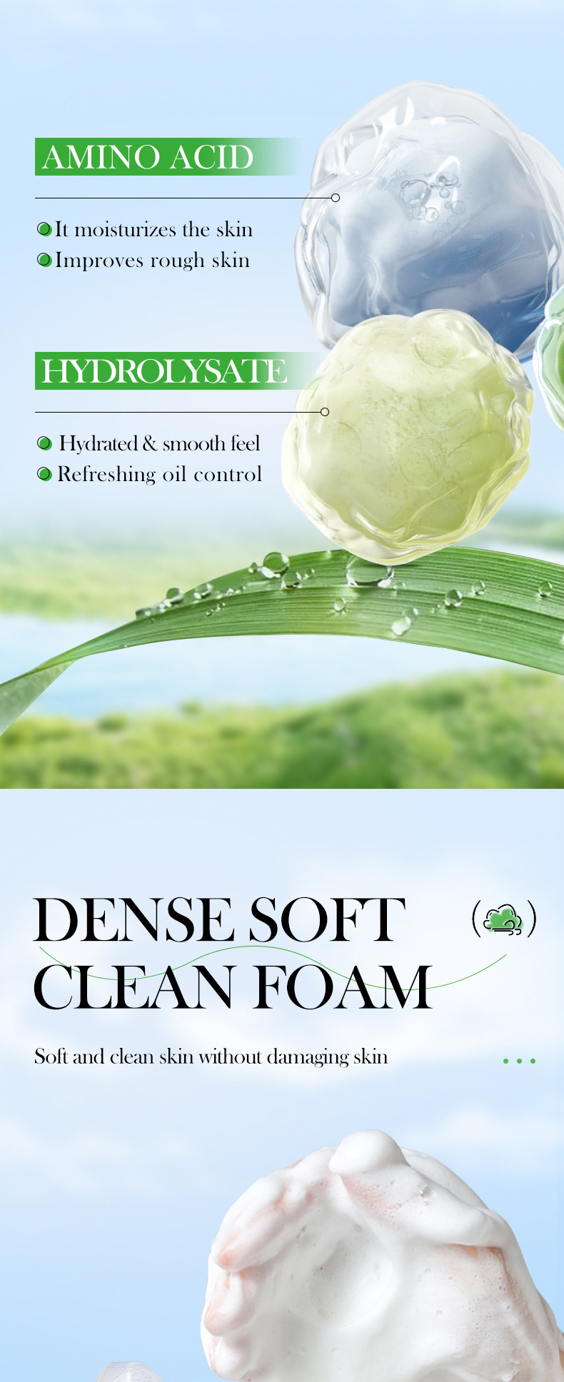 全英文洗面奶SADOER植物氨基酸精华洁面慕斯系列绵密泡沫