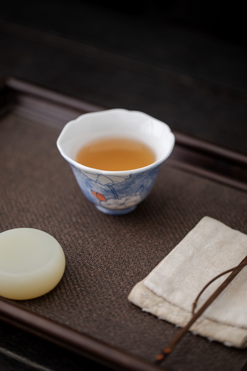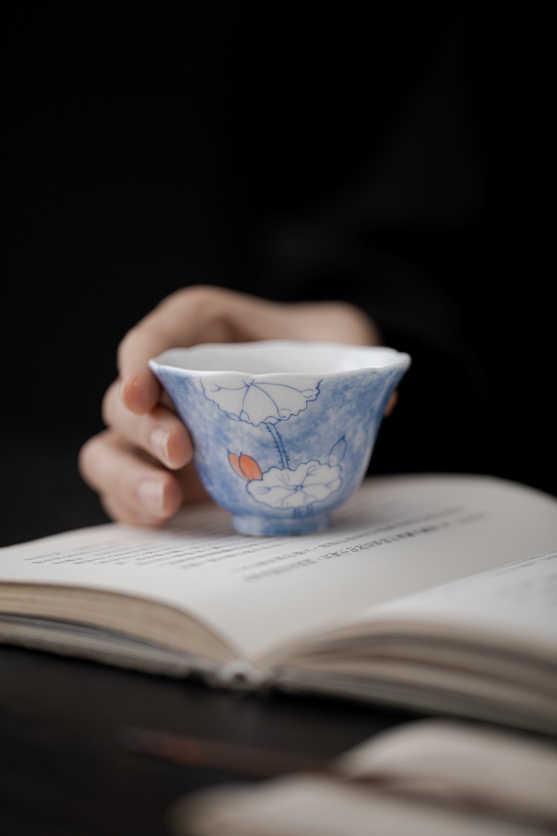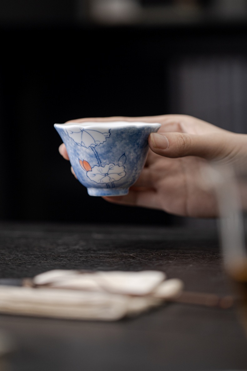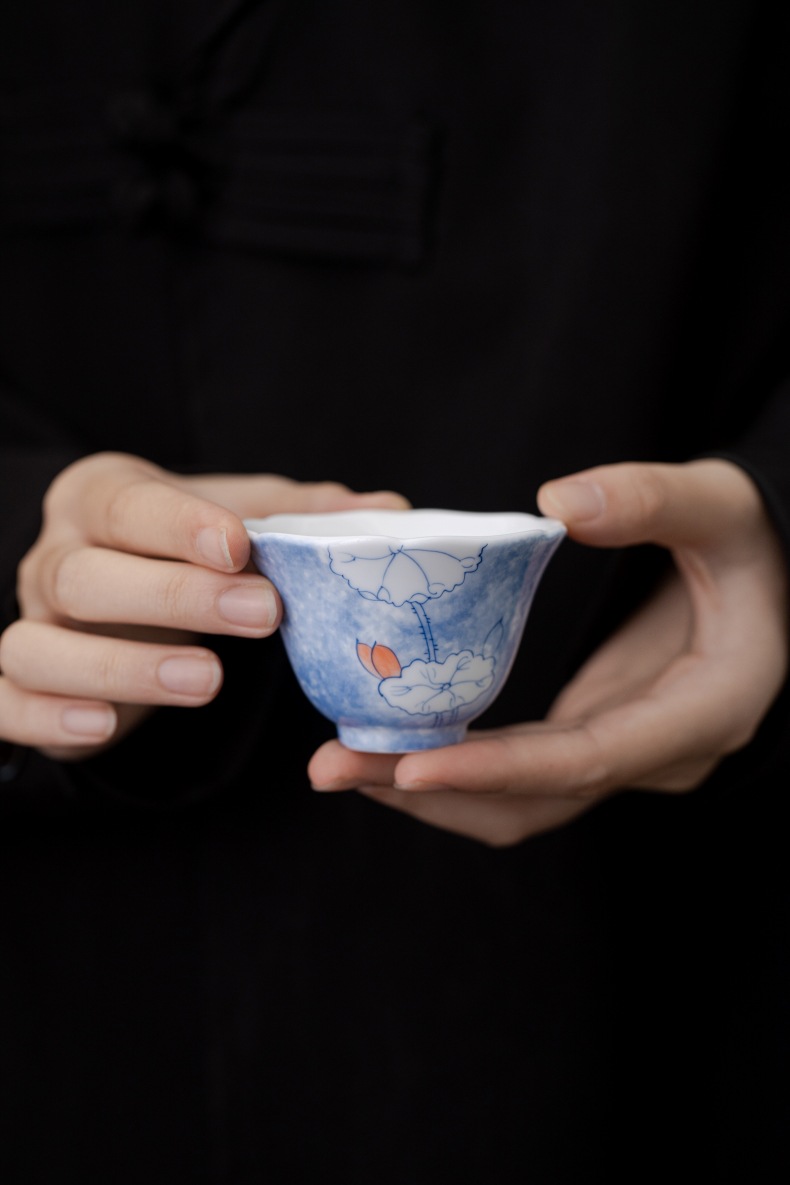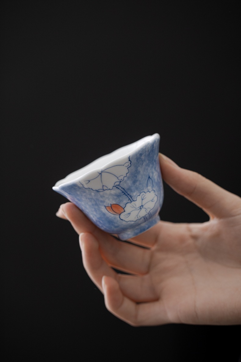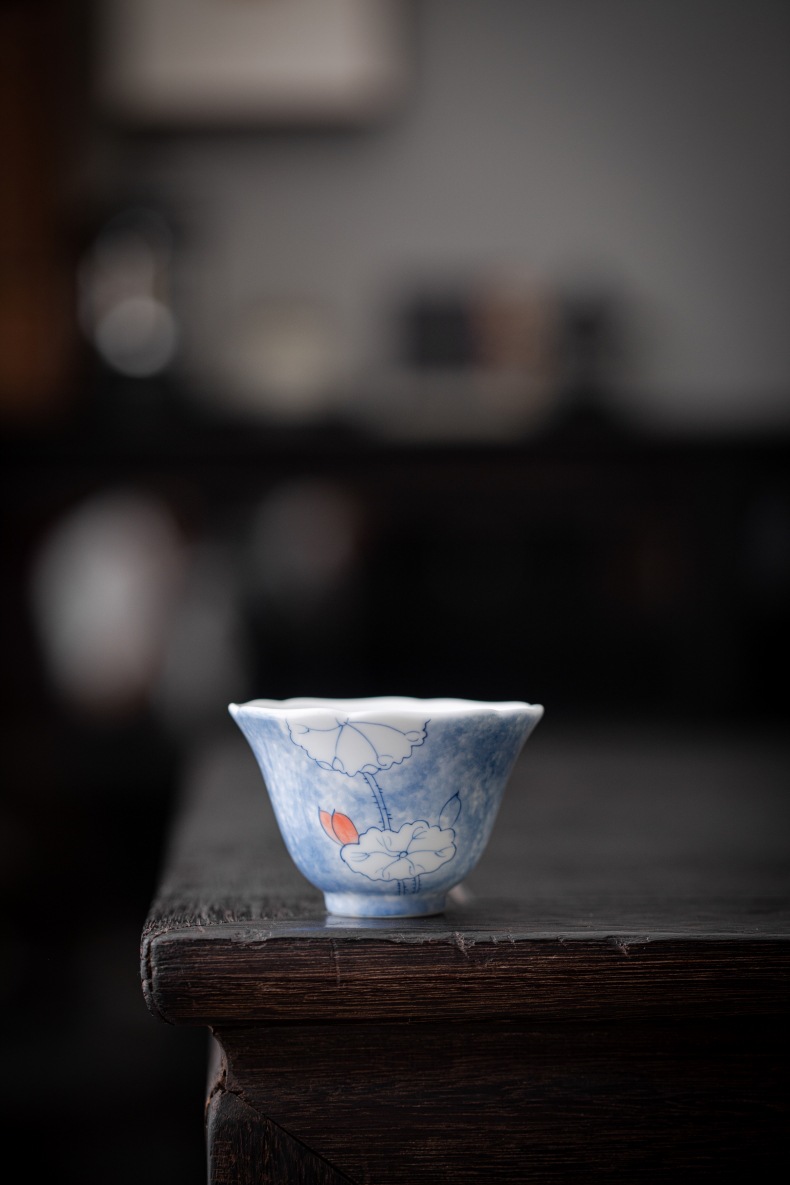 釉下彩晕染手绘荷叶花口杯陶瓷主人杯白瓷家用品茗杯单杯喝茶杯 English | 投诉