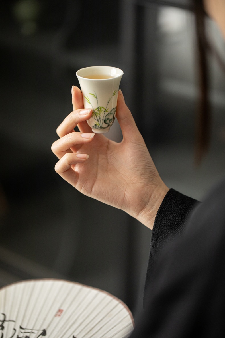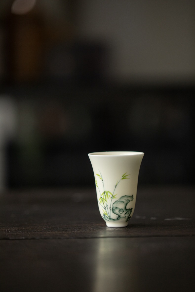 手绘太湖石竹子闻香杯高身主人杯功夫茶具品茗杯陶瓷单杯家用喝茶 English | 投诉