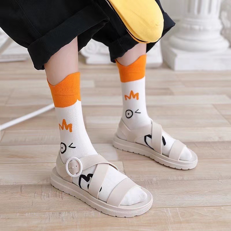 袜子女夏季卡通鸭子中筒棉袜吸汗ins潮袜日系可爱无骨长袜女士