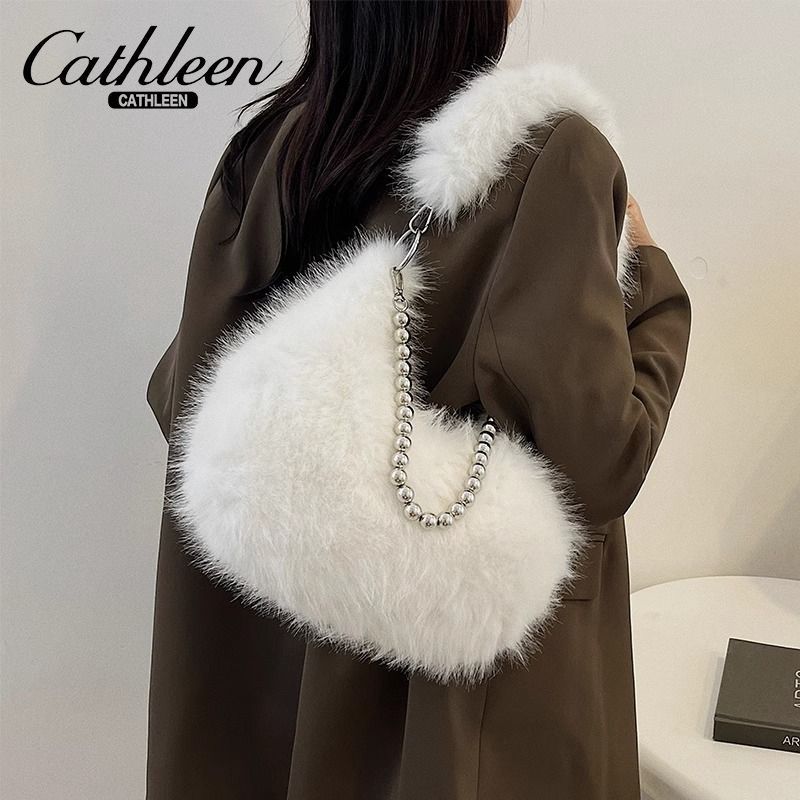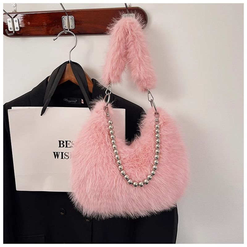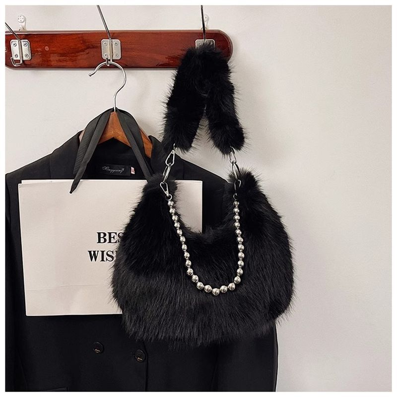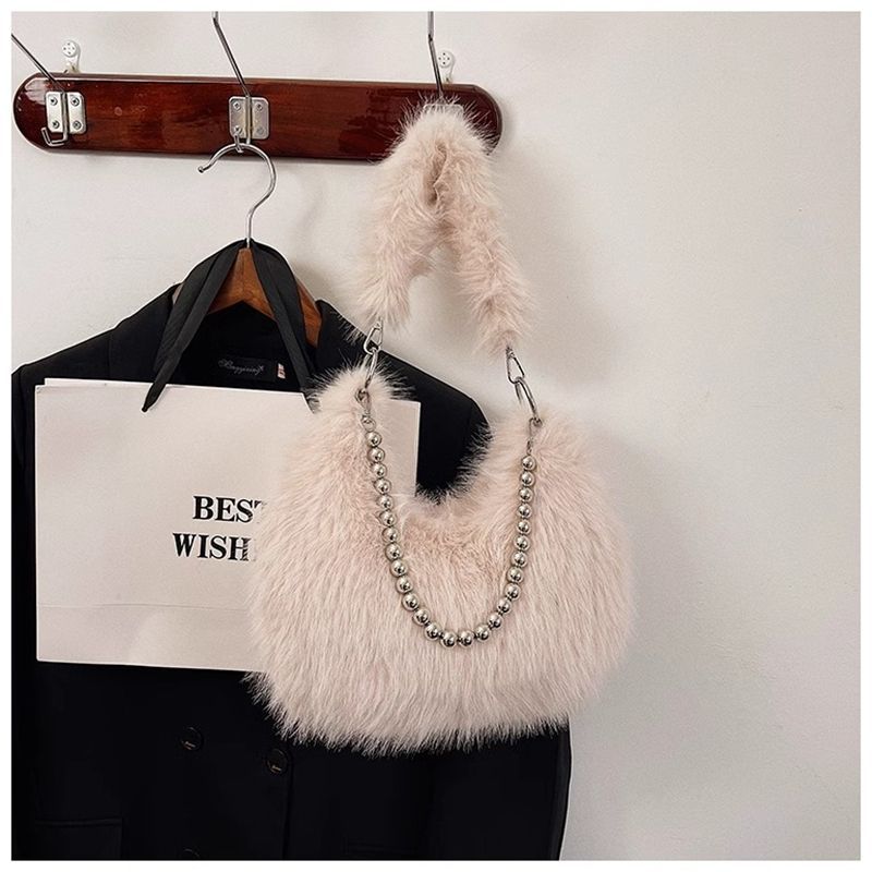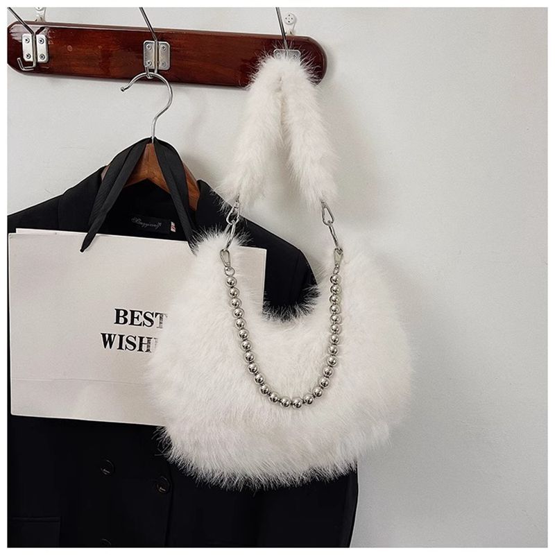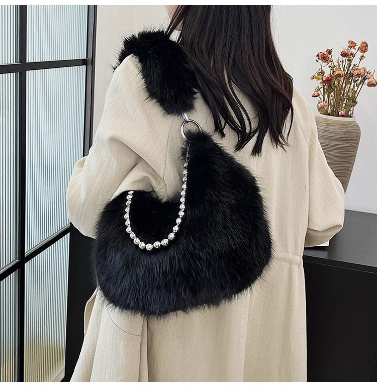 2024秋冬新款毛茸茸包小众设计仿狐狸毛腋下包珍珠链单肩包毛毛包