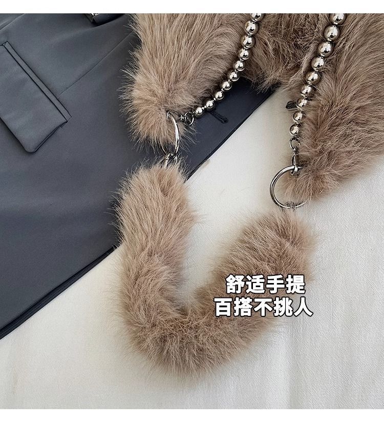 2024秋冬新款毛茸茸包小众设计仿狐狸毛腋下包珍珠链单肩包毛毛包 投诉