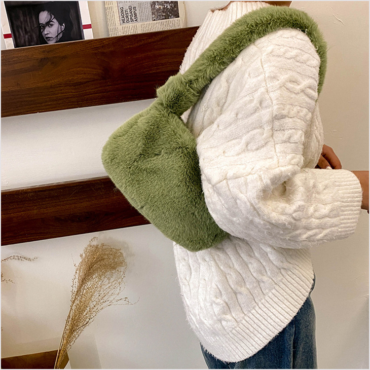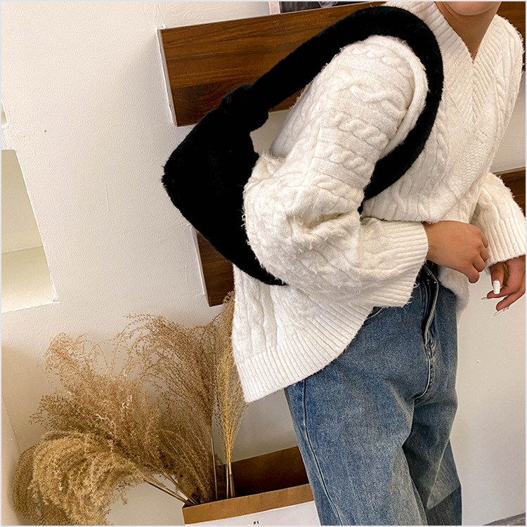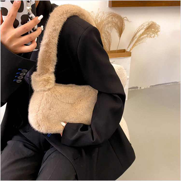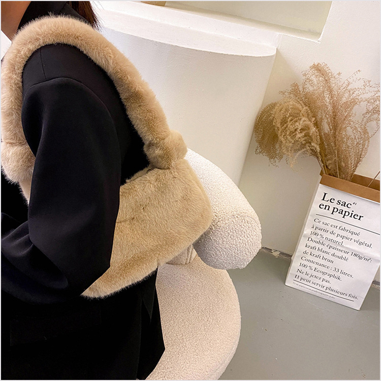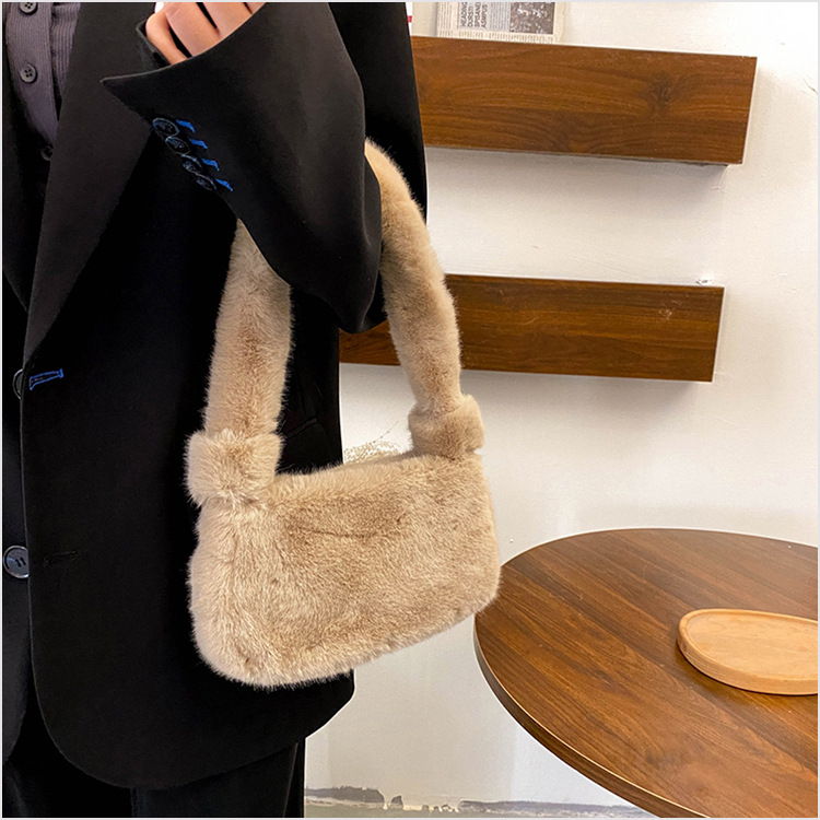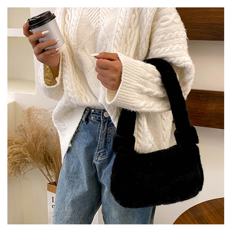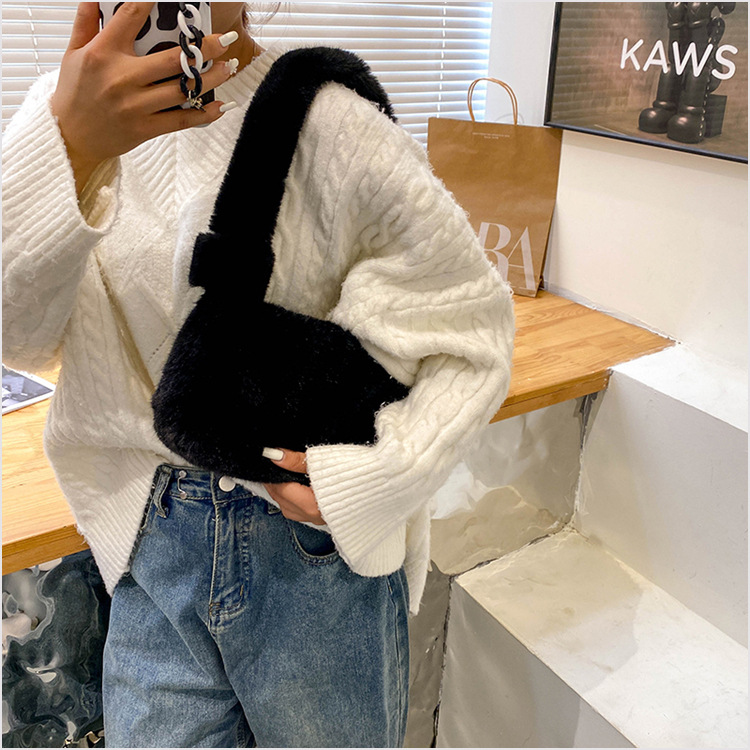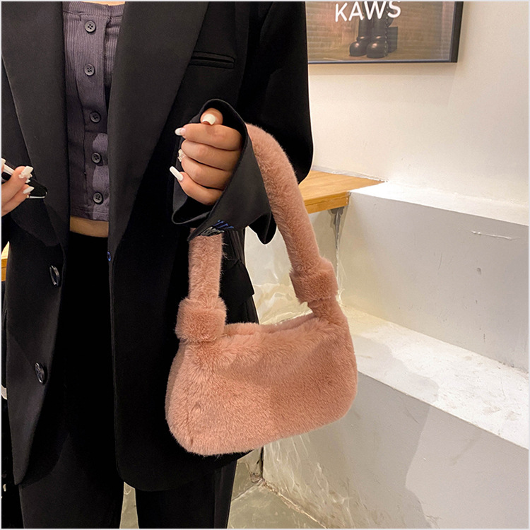 新款时尚潮流女士毛绒斜挎包包可爱手提单肩包可装手机腋下包