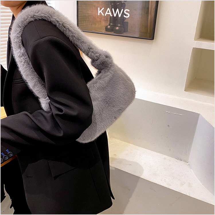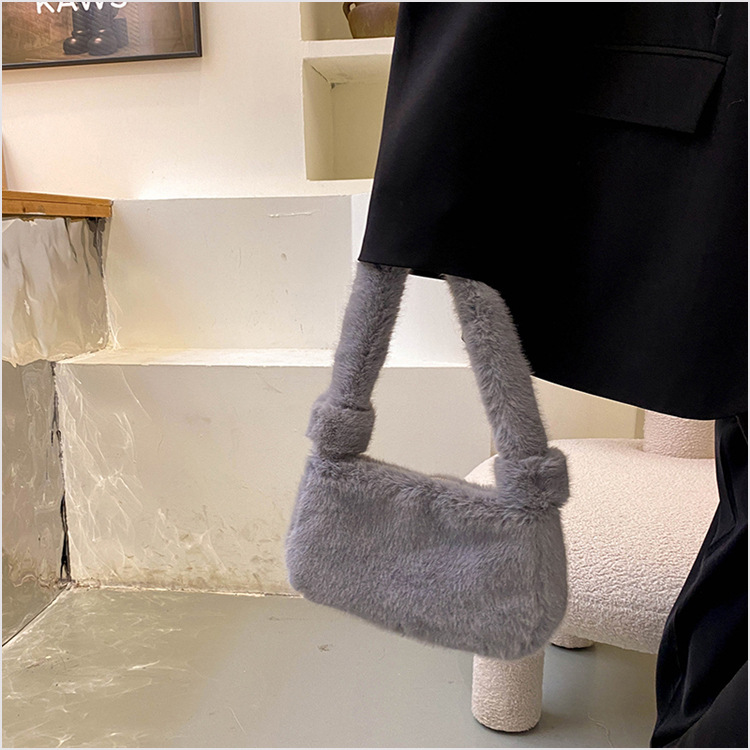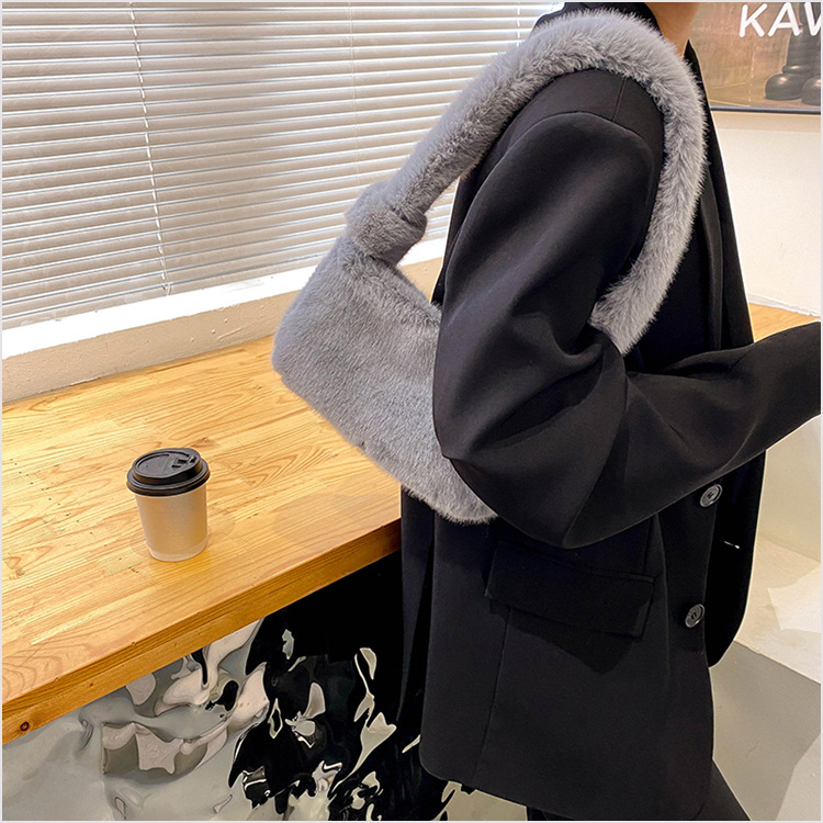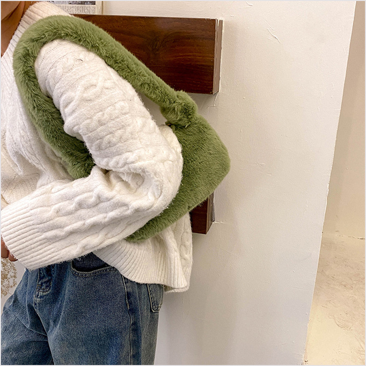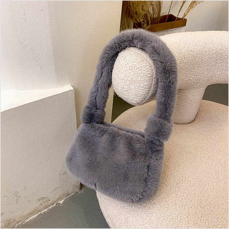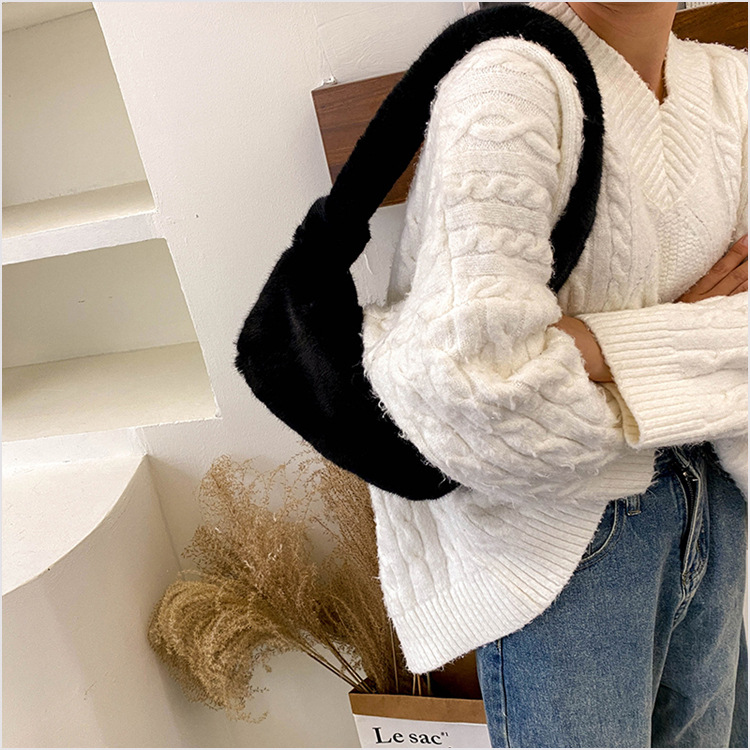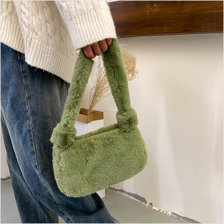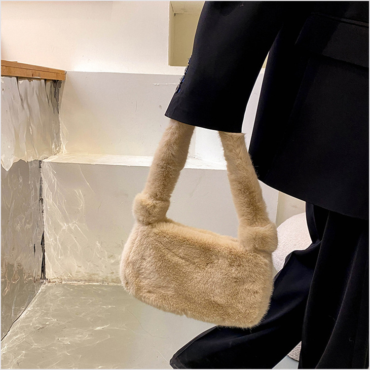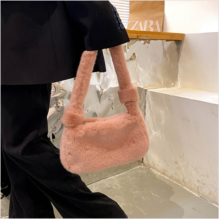 新款时尚潮流女士毛绒斜挎包包可爱手提单肩包可装手机腋下包