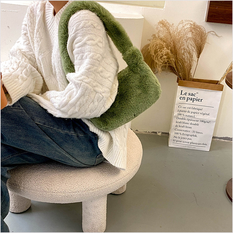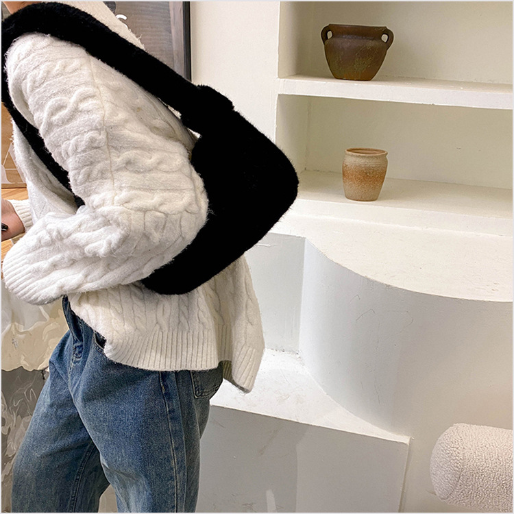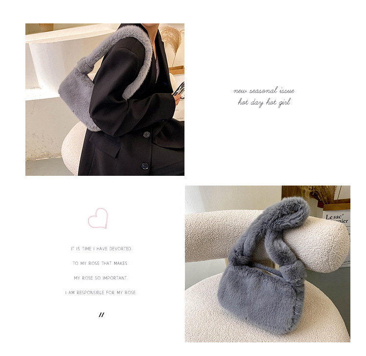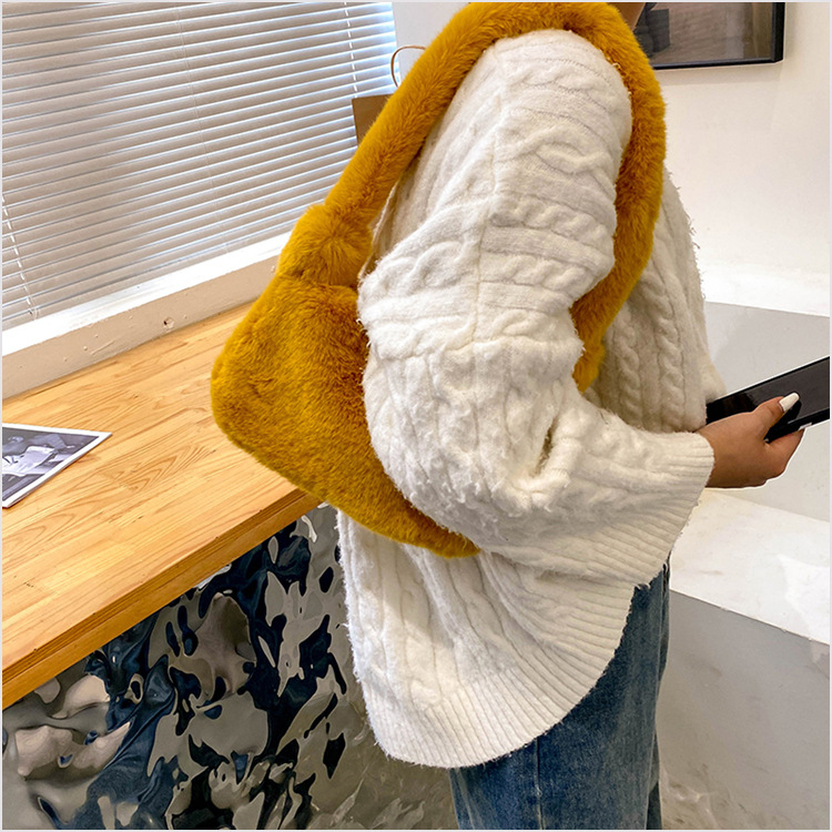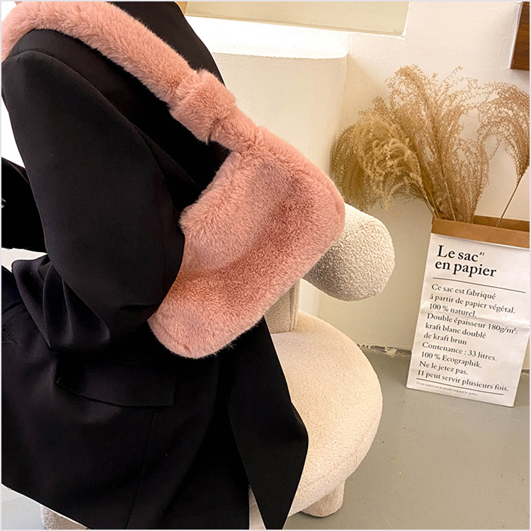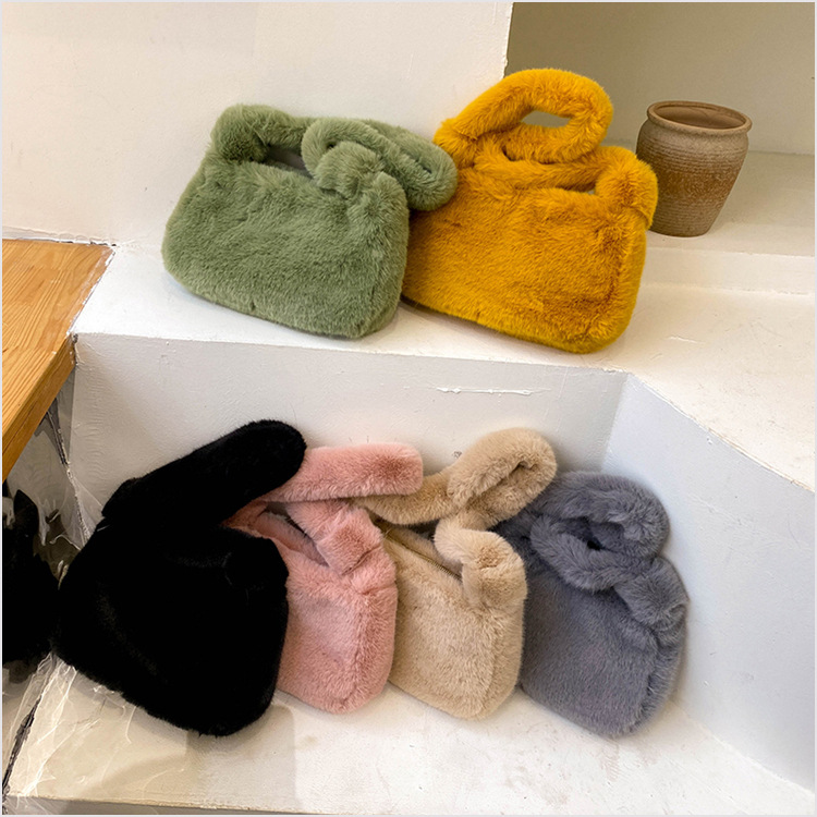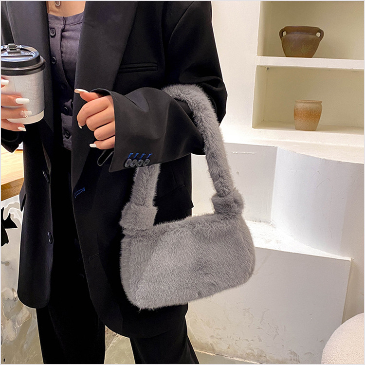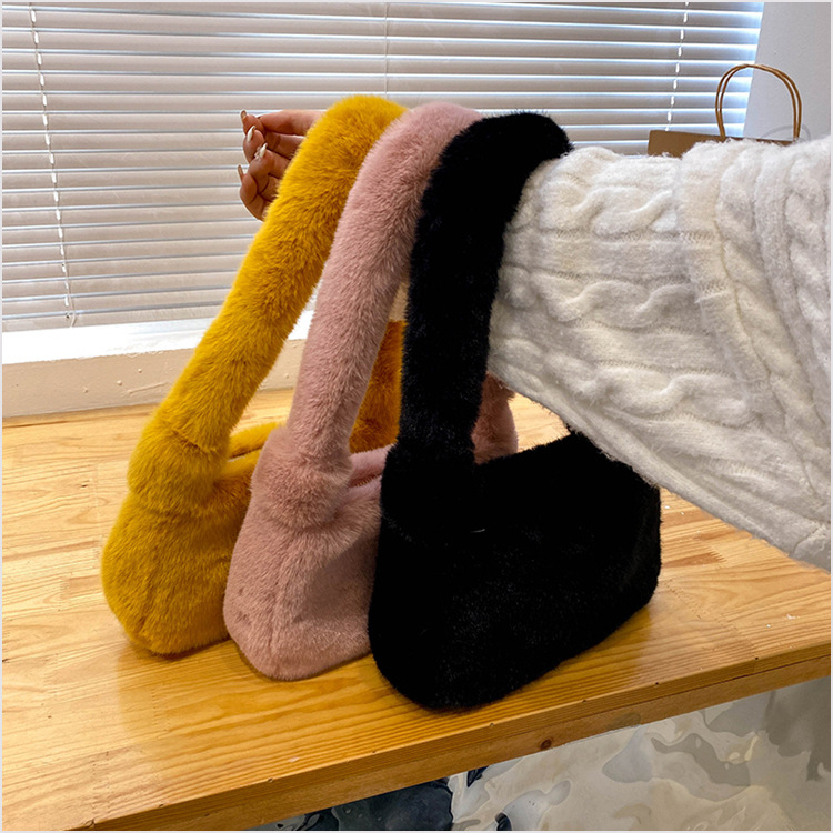 新款时尚潮流女士毛绒斜挎包包可爱手提单肩包可装手机腋下包