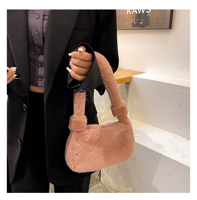 新款时尚潮流女士毛绒斜挎包包可爱手提单肩包可装手机腋下包 投诉