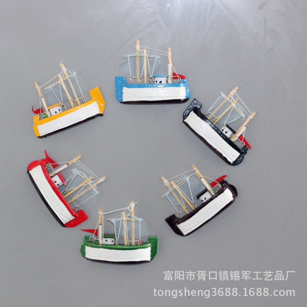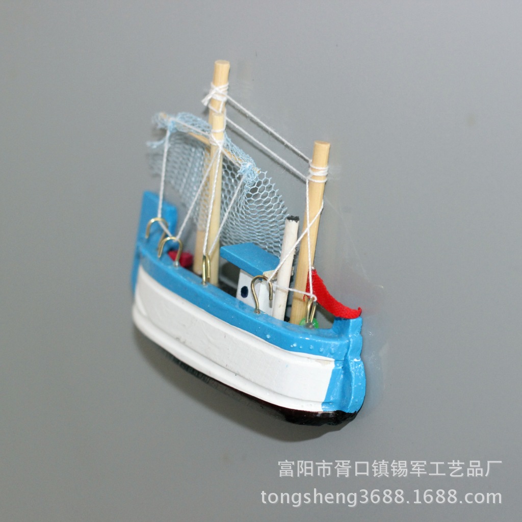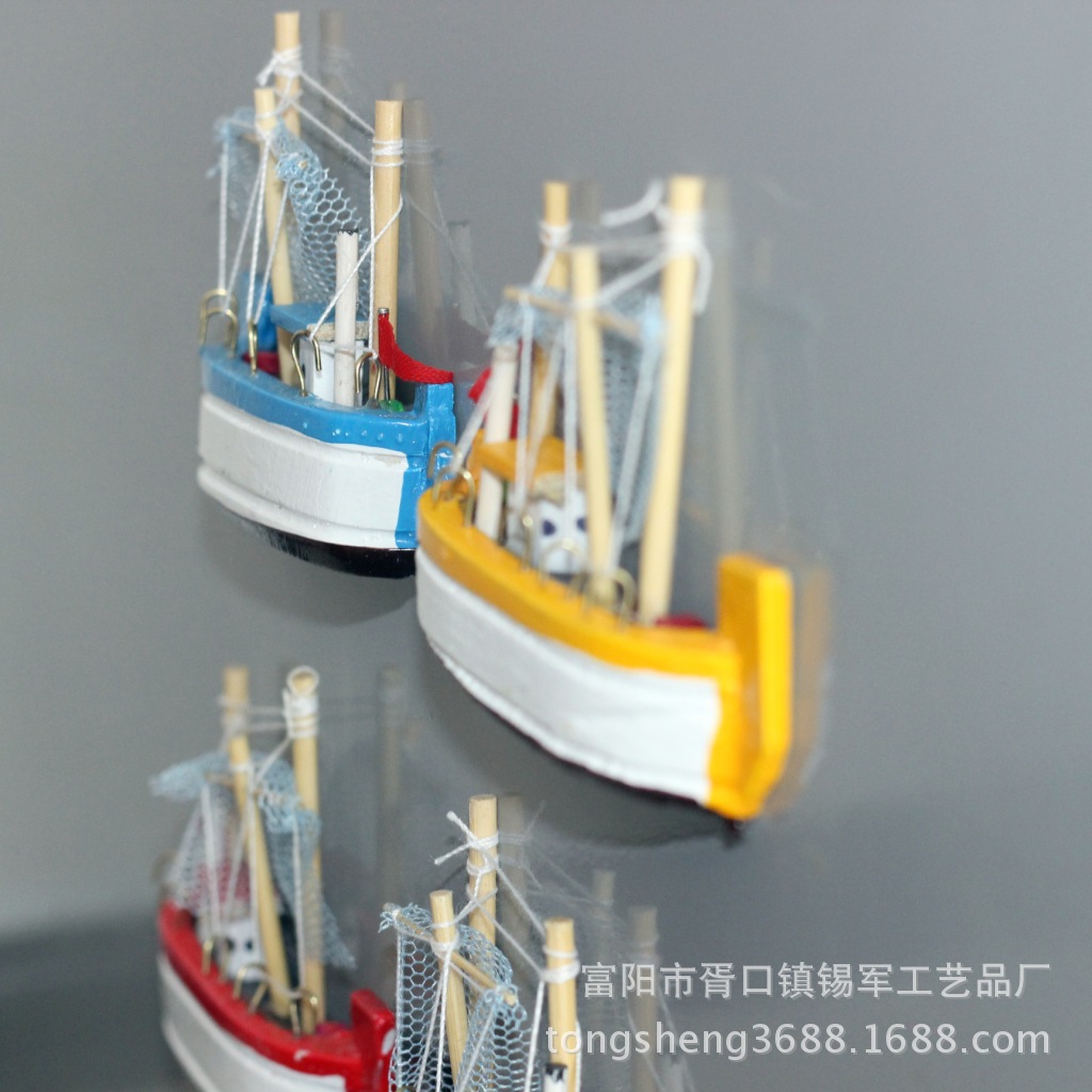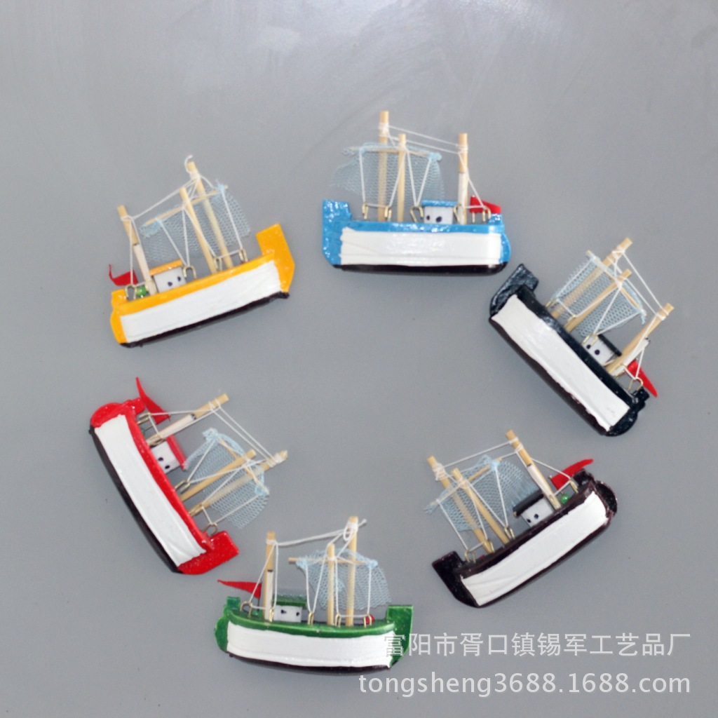 厂家直销地中海风格木质帆船模型冰箱贴 8公分渔船冰箱贴促销批发 投诉