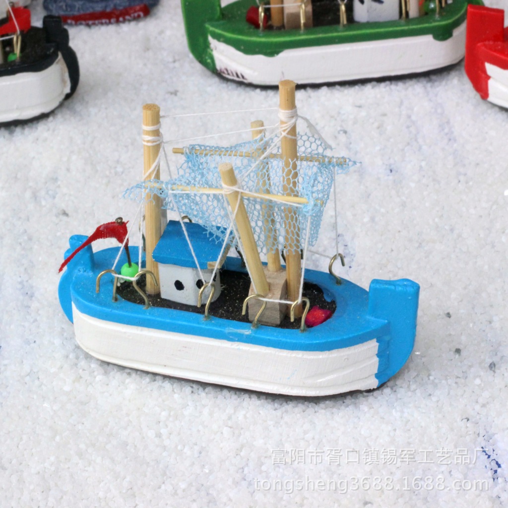 厂家直销生日蛋糕摆件 地中海帆船手工木质工艺品 彩色渔船小帆船