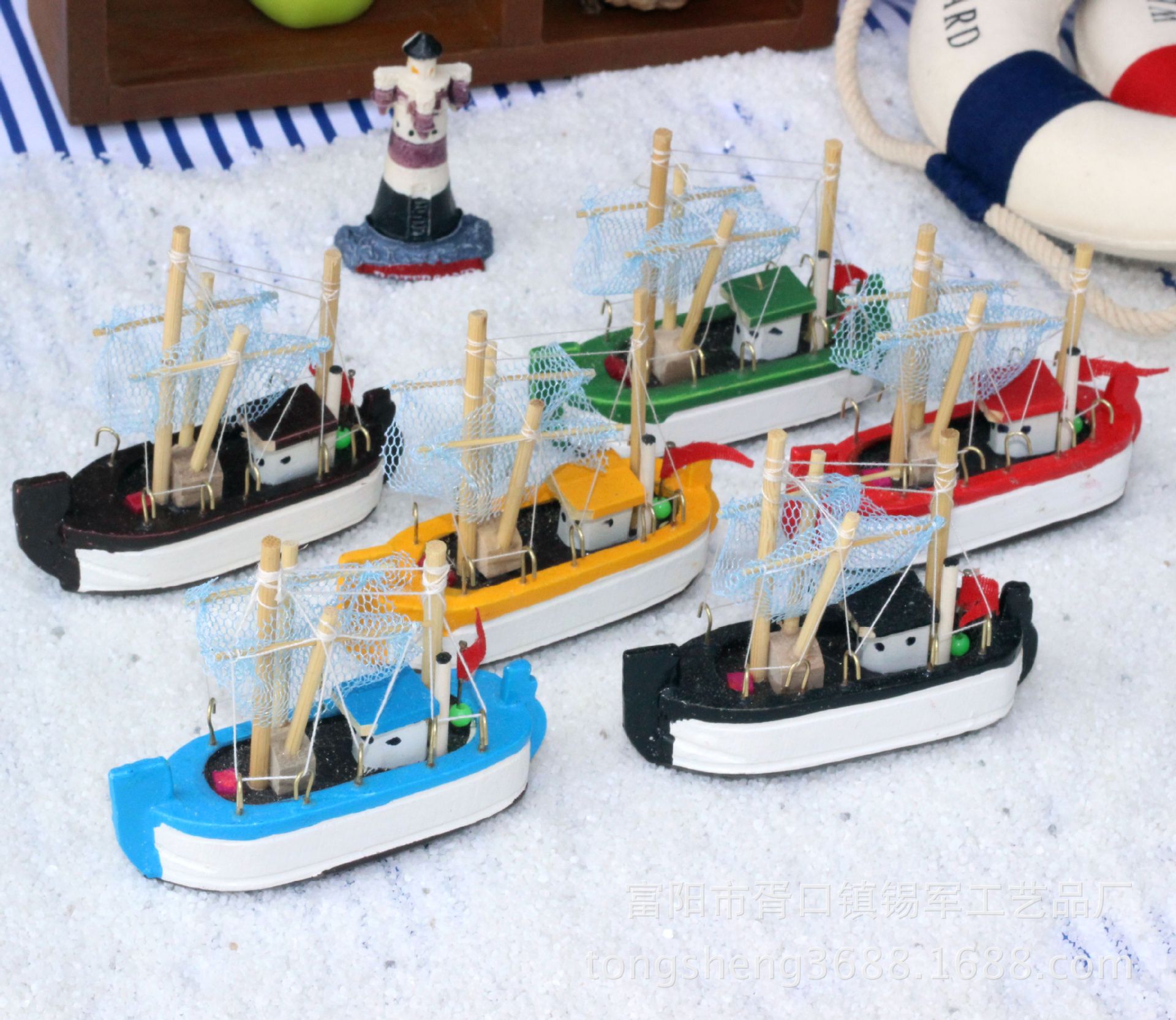 厂家直销生日蛋糕摆件 地中海帆船手工木质工艺品 彩色渔船小帆船 投诉