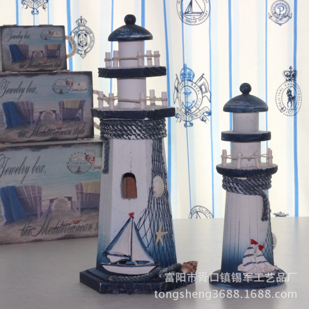地中海风格装饰 蓝白色 灯塔 桌面摆件 木制工艺品 样板间装修