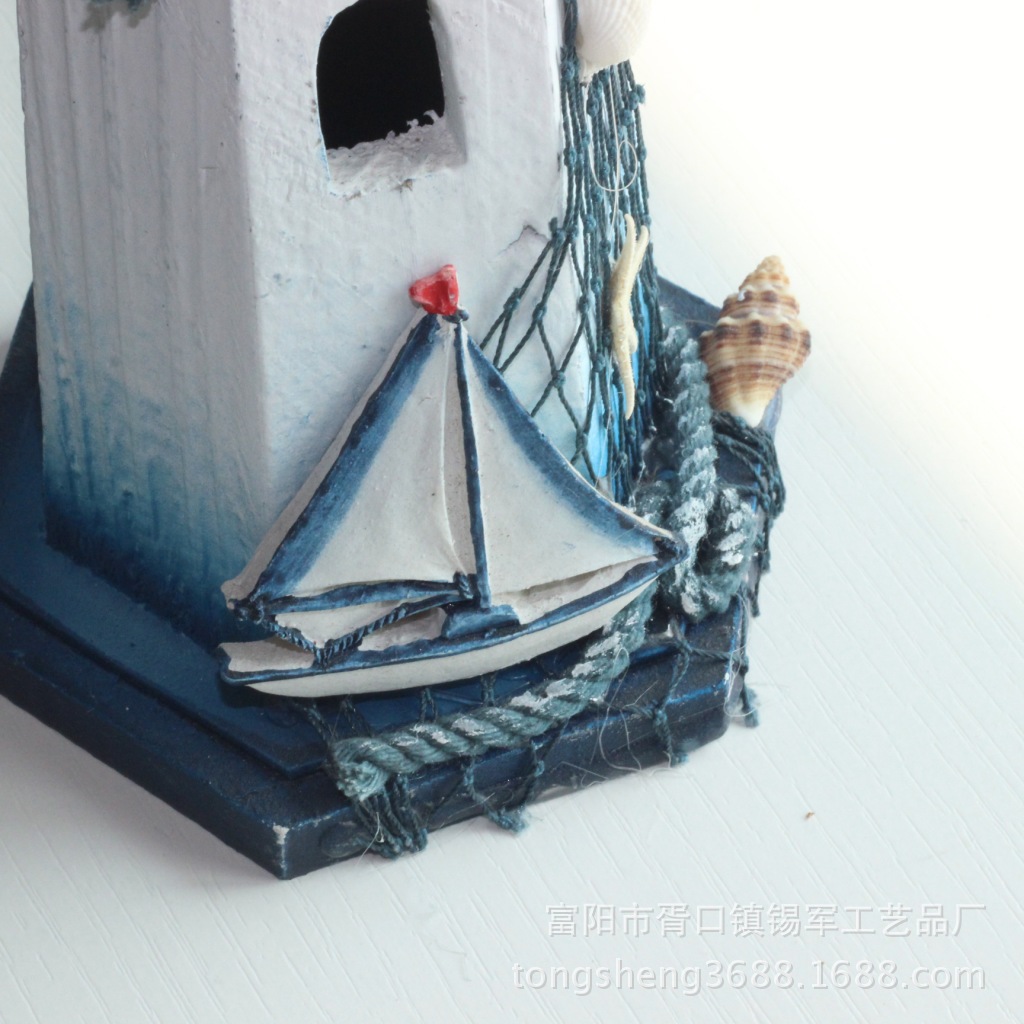 地中海风格装饰 蓝白色 灯塔 桌面摆件 木制工艺品 样板间装修 投诉