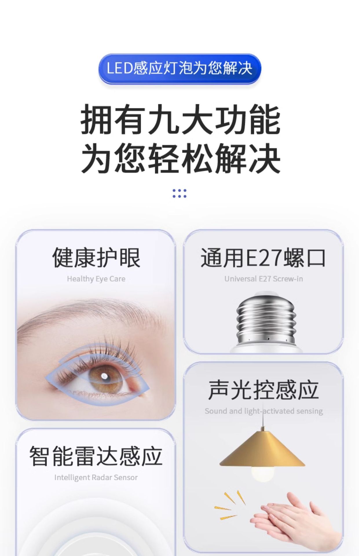感应灯声控灯人体雷达红外线楼道楼梯走廊过道智能声光控家用灯素