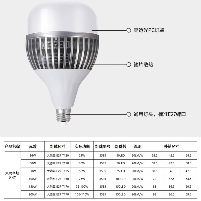 | E27-200W-含彩盒 | ¥3500 | 99998只可售 |