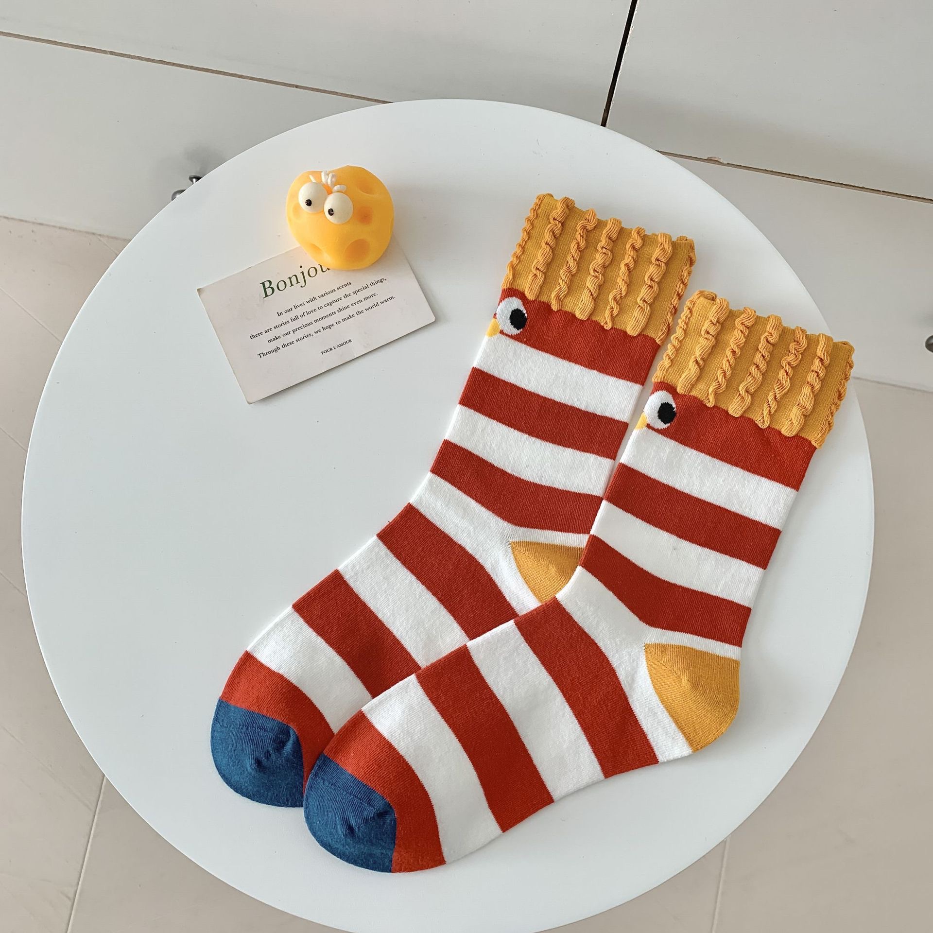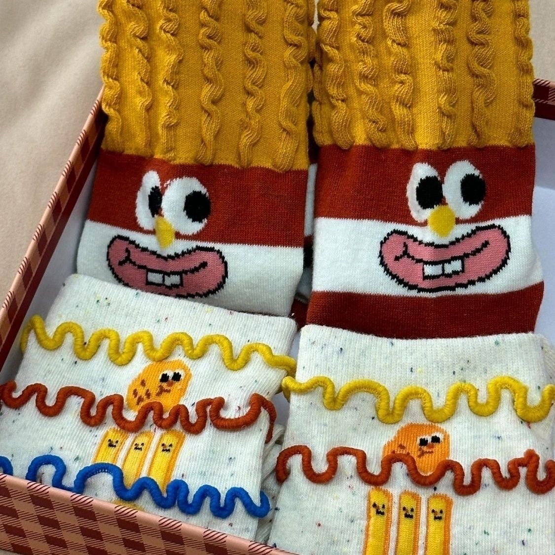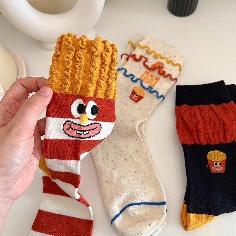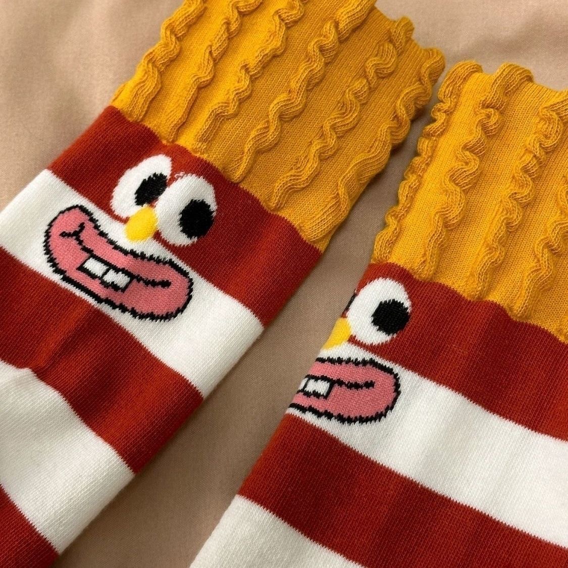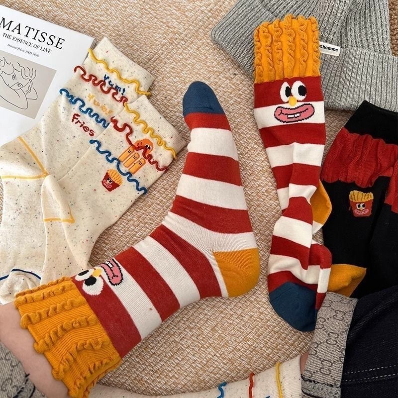 卡通ins时尚袜子搞怪薯条堆堆卡通创意秋冬中筒可爱棉袜彩虹