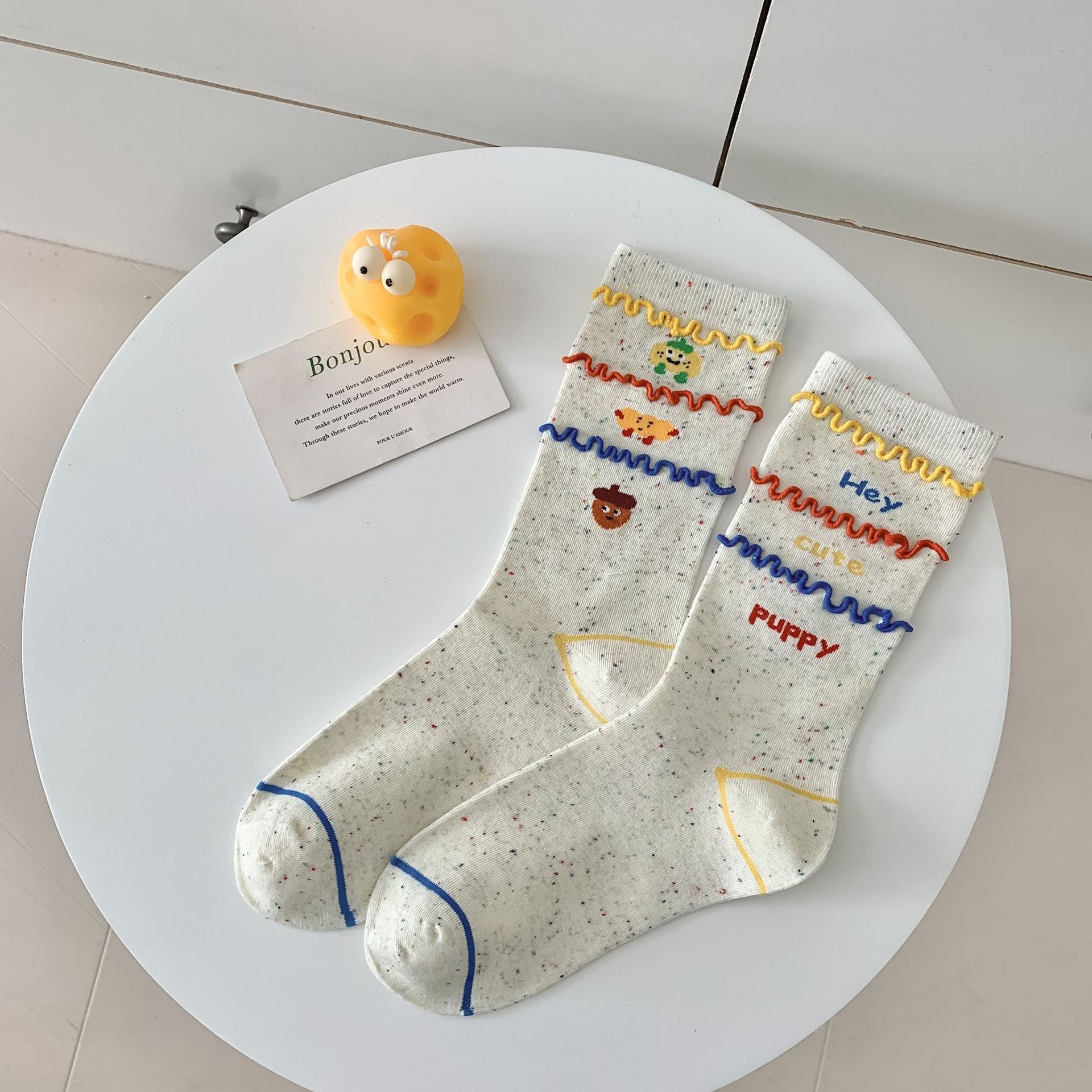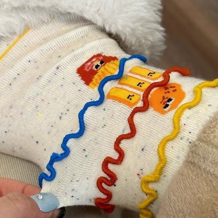 卡通ins时尚袜子搞怪薯条堆堆卡通创意秋冬中筒可爱棉袜彩虹 投诉