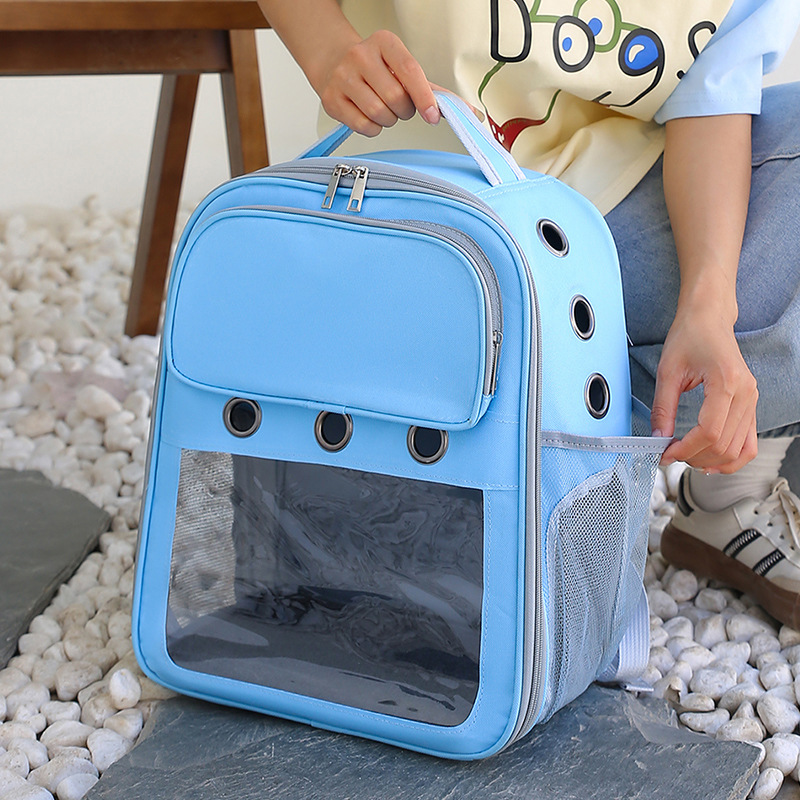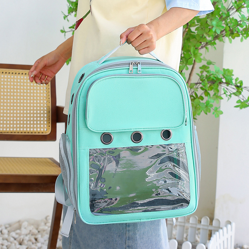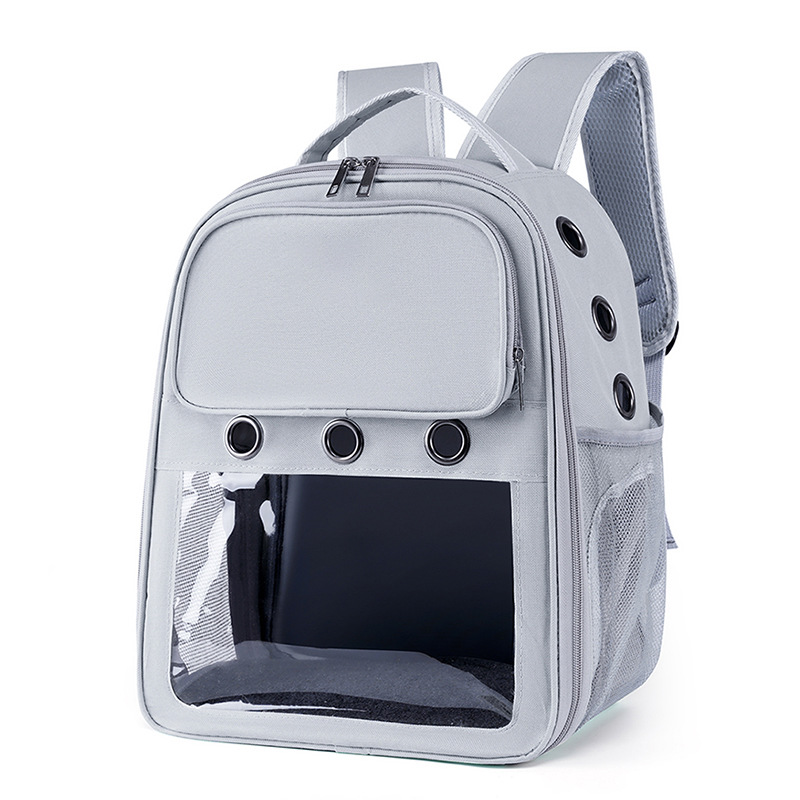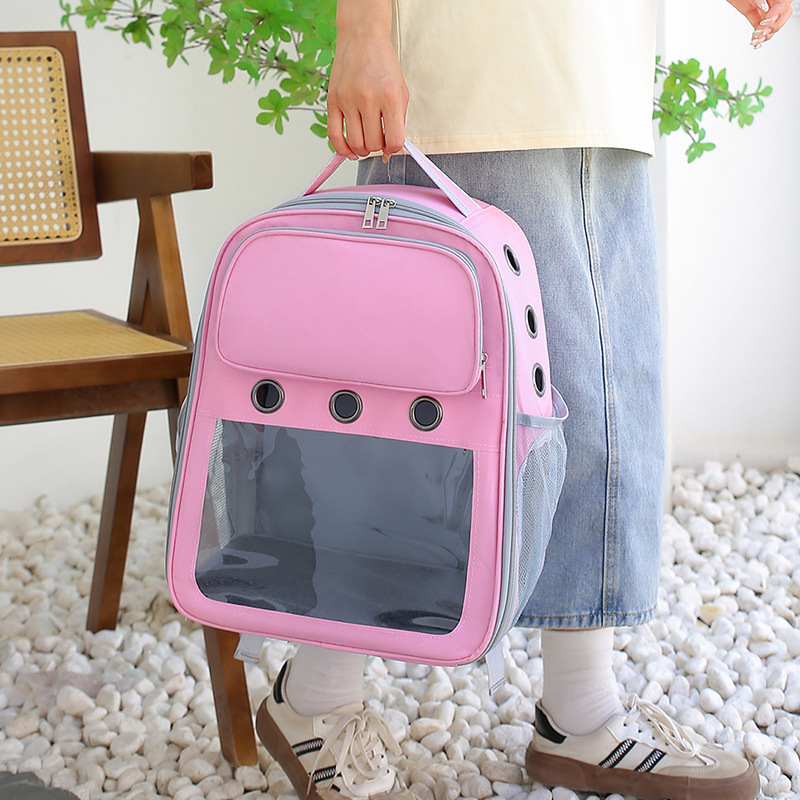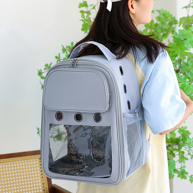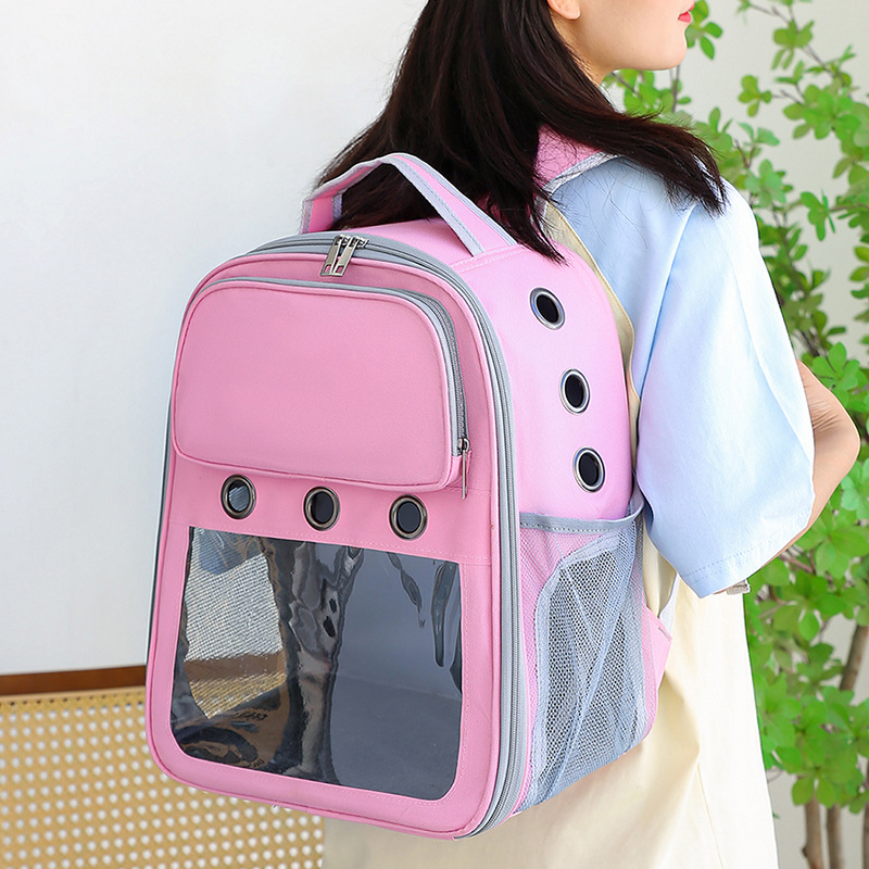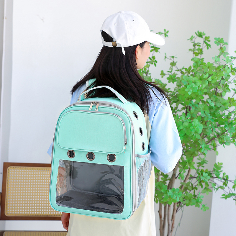 新款简约休闲双肩宠物包可视大空间宽肩带减负猫包透气背包批发