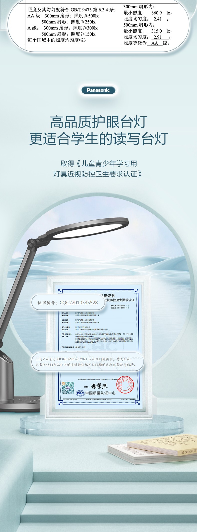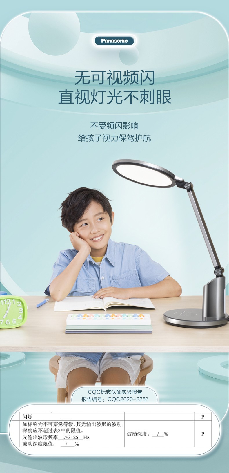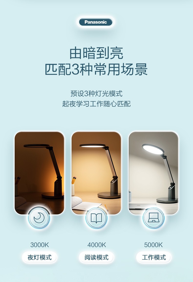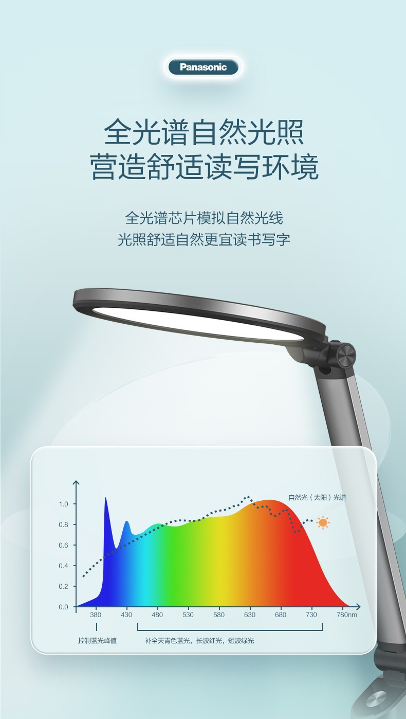 松下LED致巡全光谱国AA级护眼台灯学生书桌灯儿童阅读灯HHLT0633