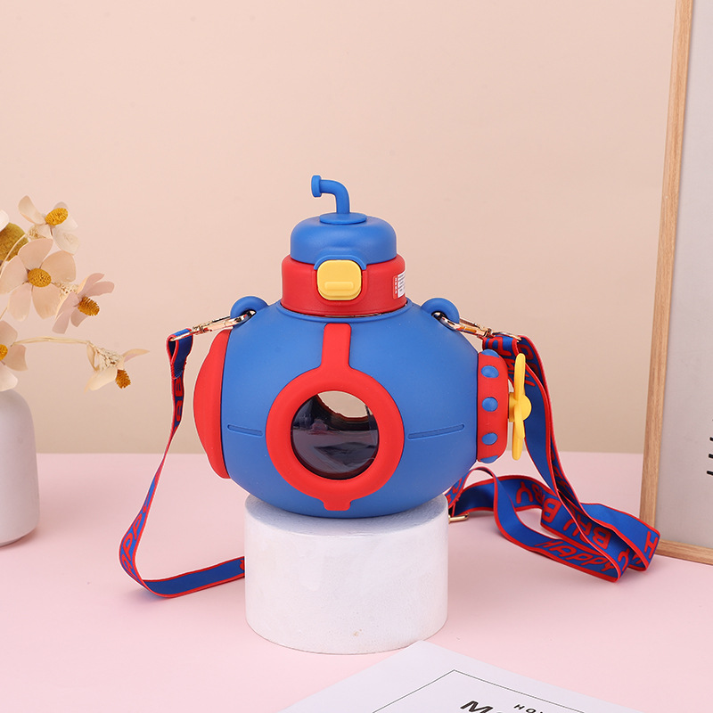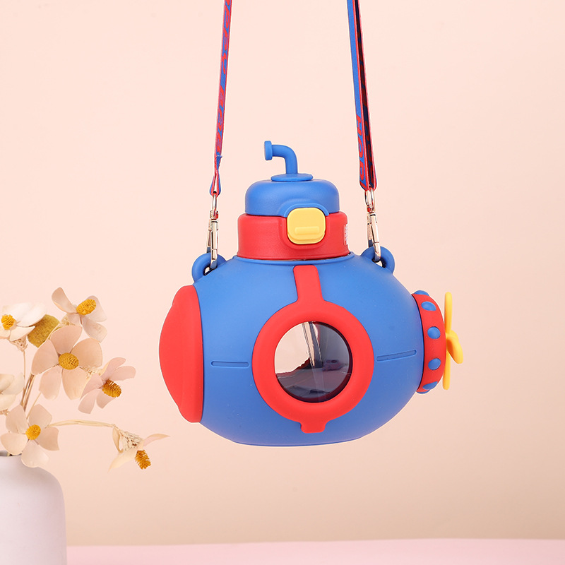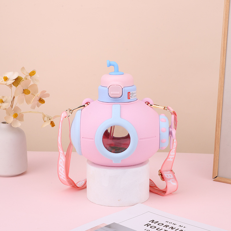 儿童潜艇吸管杯卡通可爱防摔上塑料杯大容量男女孩小学生大肚杯