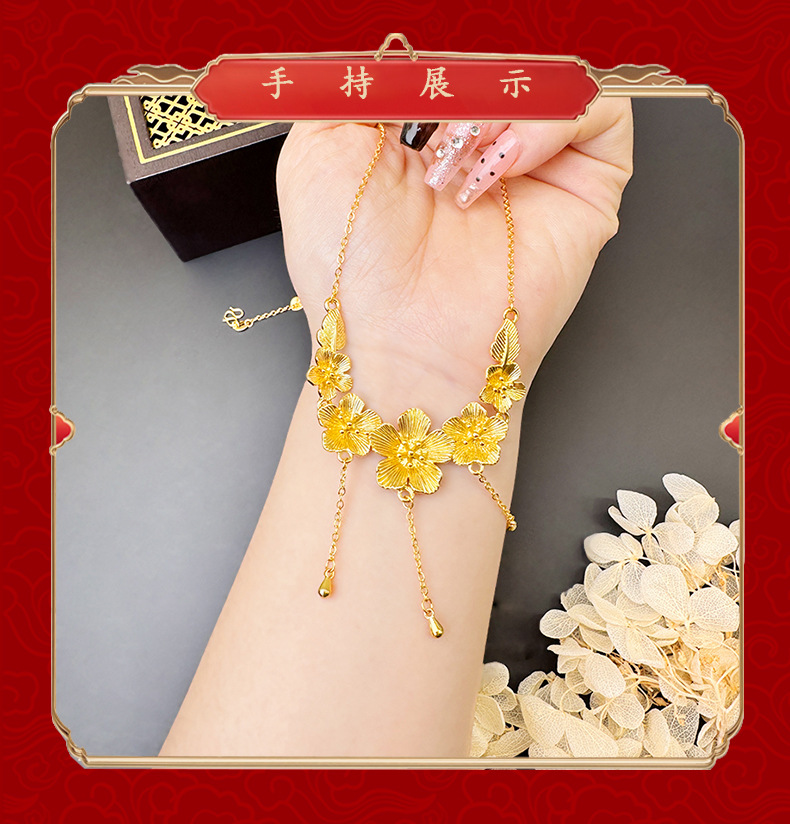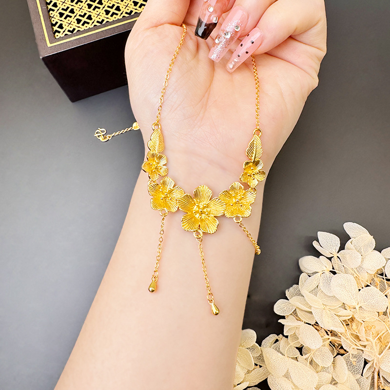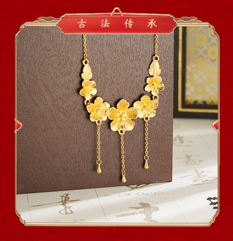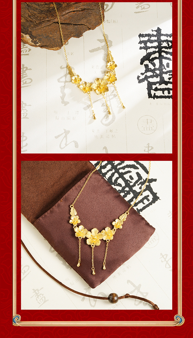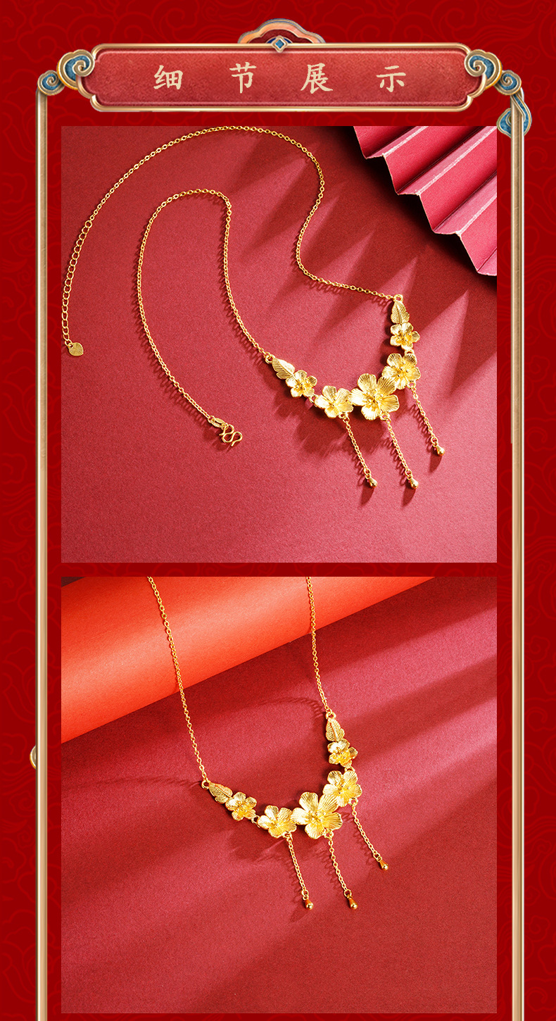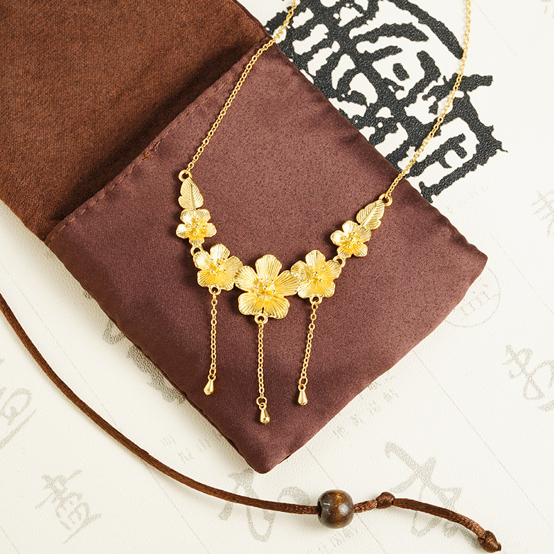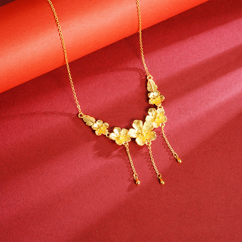 新款沙金桃花项链女款高级感气质轻奢首饰品久不掉色义乌配饰批发 English | 投诉
