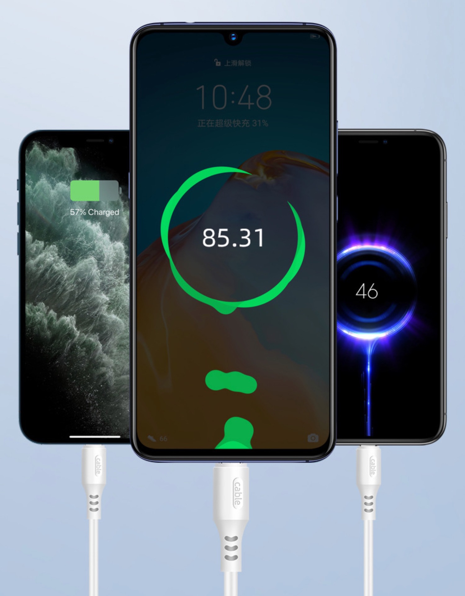 铜丝规格:30*2c,60支铜,过2.4A电流,不支持快充,P果六颗料子头