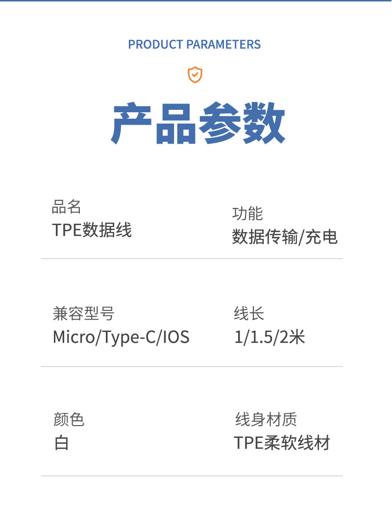 品牌: 曾勇 接口: 其他 长度: 1-2m 分线接头数量: 单头 型号: Type-c白色 颜色: 1米,1.5米,2米 特性: 快充 最大输出功率: 6A 66w 材质: TPE 颜色分类: 白色 重量: 0.1 kg/条